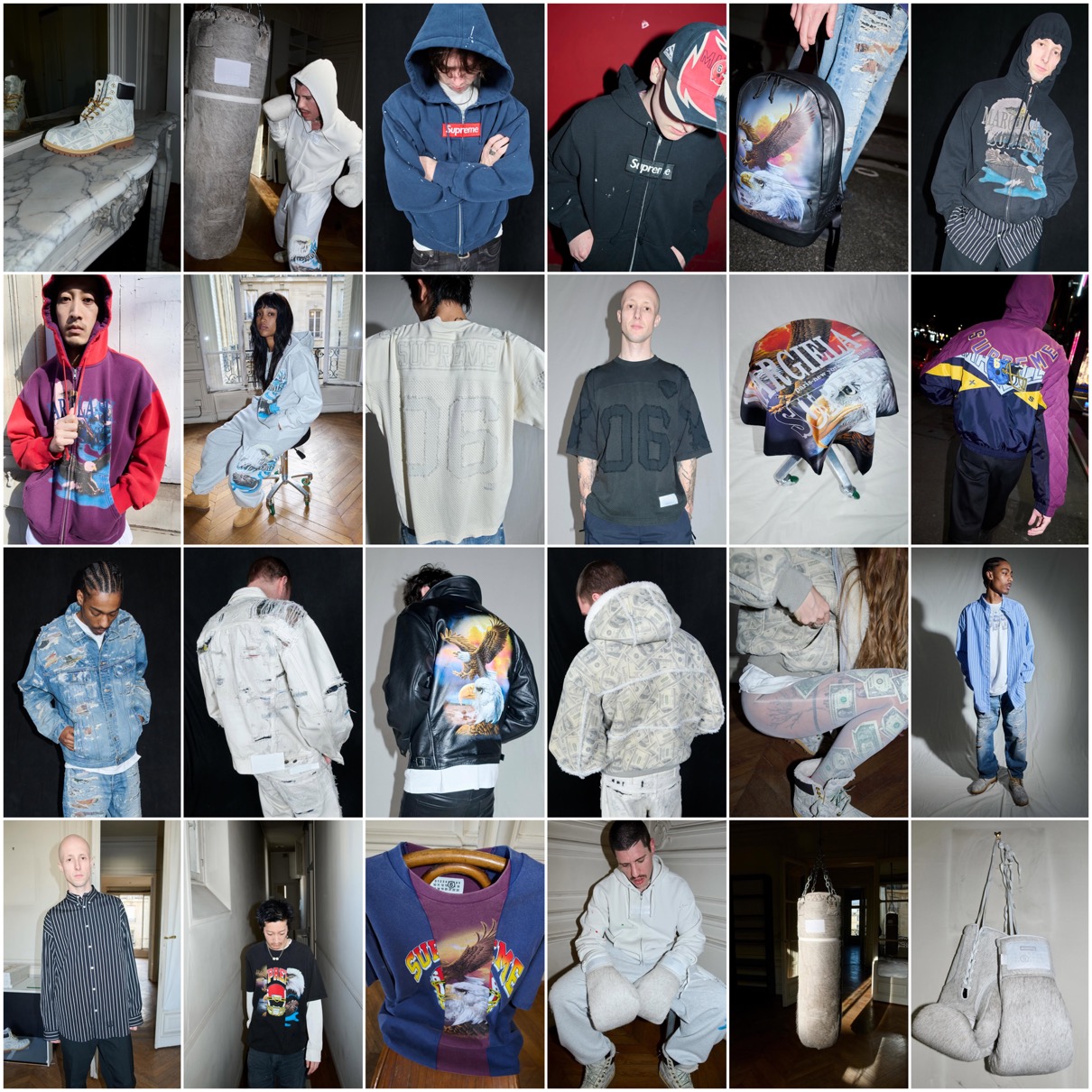 今週は、Maison Margiela(メゾンマルジェラ)のディフュージョンラインとして1997年に誕生した「MM6 Maison Margiela(エムエム6 メゾン マルジェラ)」との新作コラボコレクションが公式より予告。2024年春夏のコラボに続き、SupremeとMM6が約2年ぶりにタッグを組んだカプセルコレクションでは、背面に両ブランドネームとパリ – ニューヨーク – ミルウォーキーの地名がプリントされたイーグルジップフーディーをはじめ、コットンフットボールジャージー、ディストレスドサルベッジデニムトラッカージャケットとジーンズ、スプリットスタジャン、Box Logo ジップフーディー、スプリットTee、マネーTee、スプリット6パネルキャップ、エバーラスト製トレーニング用グローブ、サンドバッグ、背面にパトリオット・イーグルの刺繍が入ったショット製トリプルコラボレザージャケット、100ドル札柄のフード付きシャーリングボンバージャケット、長袖シャツ、スウェットパンツ、 6パネルキャップ、シルクスカーフ、バックパック、ティンバーランド®とのトリプルコラボとなる100ドル札柄 6インチ プレミアム ウォータープルーフブーツなどがラインナップする予定。