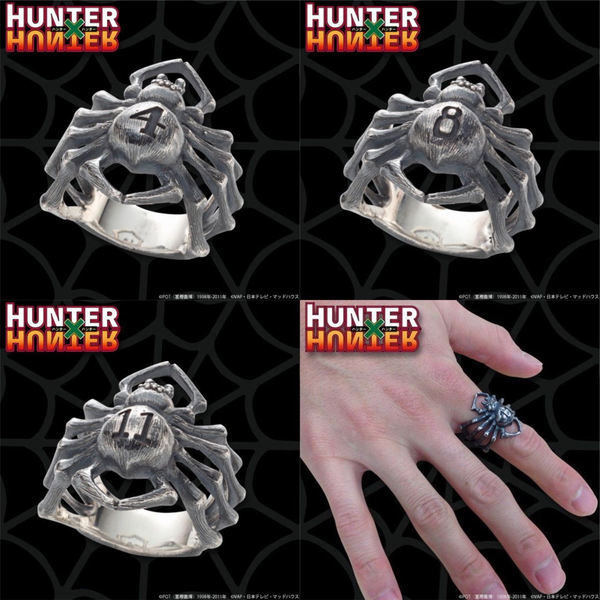 HUNTER×HUNTERより、幻影旅団のメンバーの体に入れられたクモの刺青をモチーフにしたシルバー925リングが登場。クモの背中にはメンバーのナンバーが入っており、ヒソカ/カルトの4番、シズクの8番、ウヴォーギンの11番といった3種がラインナップする。
