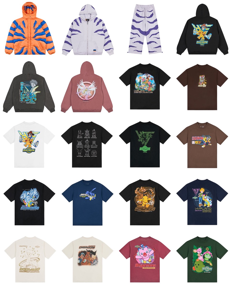 LAを拠点とするストリートブランド「Hypland(ハイプランド)」と、デジモンシリーズのテレビアニメ第1作のテレビシリーズ『デジモンアドベンチャー』によるコラボコレクションが、日本時間2026年1月27日にHyplandの海外オンラインストアで発売開始。完売したアイテムの追加先行予約が3月5日よりスタートしている。