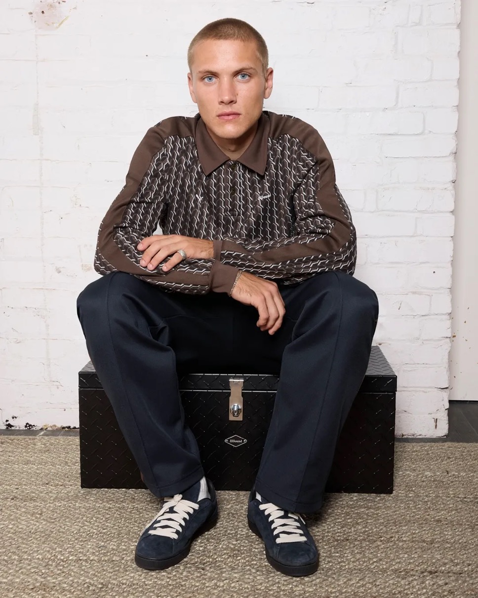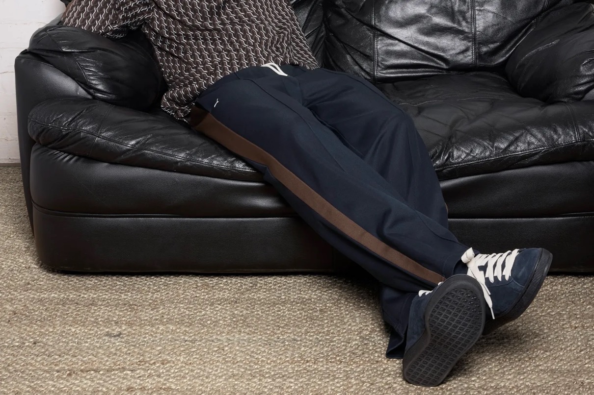 JJJJound x PUMA 25FW Collection では、人気モデル『SPEEDCAT(スピードキャット)』をブラックとブラウンのイタリアンレザーで構築した高級感あふれる逸品と、PUMAの名作『SUEDE(スウェード)』をネイビーのスウェードで仕上げ、タグを撤廃しミニマルに仕上げた全3足のスニーカーに加え、両者のロゴをあしらった長袖ニットポロとトラックパンツといった2点のアパレルアイテムがラインナップする。このカプセルコレクションは、「引退したプロフェッショナルたち」へのオマージュが込められ、快適さとスタイルを重視。不思議なほど手つかずの感覚を意図してデザインされている。アーカイブのPUMAクラシックへ敬意を表しつつ、現代に生きるために微妙に調整され、再構築されたものだ。