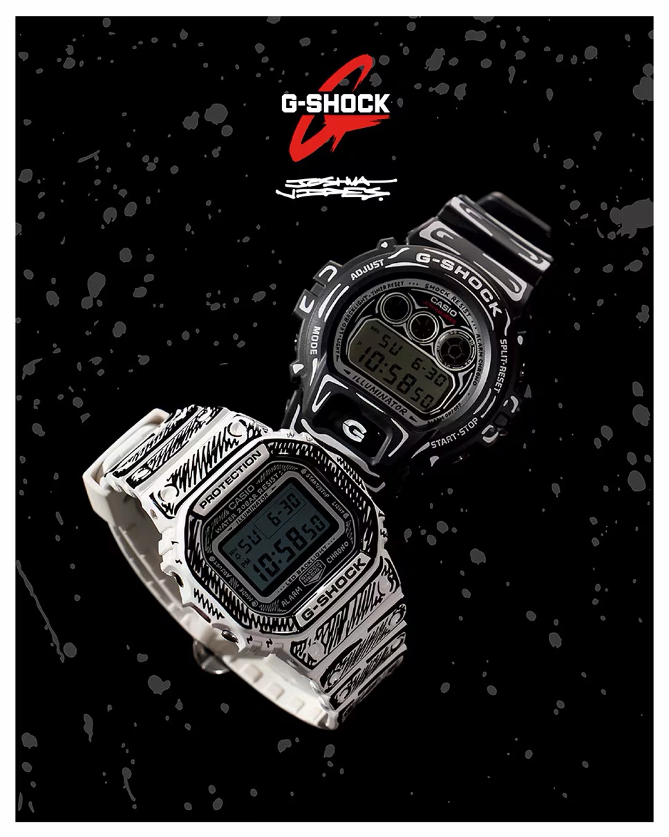 ジョシュア・ヴィーダス x Gショック 手書き風デザインのコラボ腕時計が登場。【DW-6900JV-1JR / DW-5600JV-7JR】