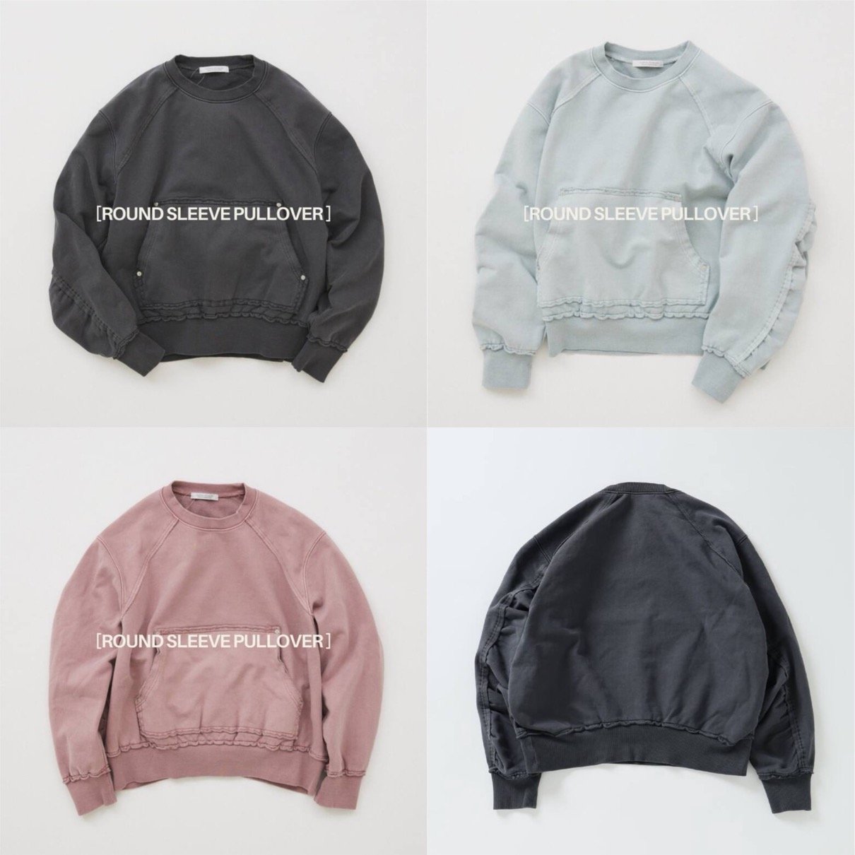 ROUND SLEEVE POは、ヘビーオンス裏毛を使用したプルオーバー。ミリタリージャケットのフォルムをベースに袖を前振りに設計し、ブルゾンのような立体的シルエットを表現。ギャザーを入れたカーブラインが動きのある表情を生み、存在感のある一着に。強めの洗いをかけたフェードカラーが特徴で、ヴィンテージ感のある柔らかな風合いに仕上げている。今季は肩線を斜めに切り替え、断ち切り仕様をより強調。フロントやポケット周りにも断ち切りディテールを加えることで、全体に統一感とラフなムードをプラスしている。鮮やかなカラーリングもポイントで、新鮮さと軽快さを感じられる仕上がり。カラーはブラック、サックスブルー、ピンクの3色が展開する。本コレクションは現在ジャーナルスタンダードRakten Fashionで好評発売中。気になる方は売り切れる前に手に入れておこう。