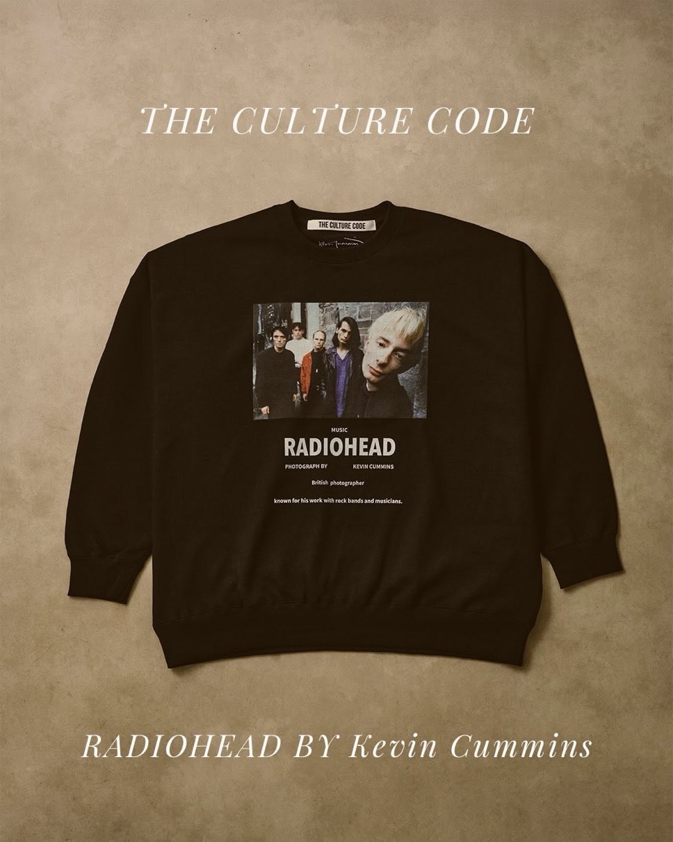 1953年、マンチェスター生まれ。当時急成長をとげたマンチェスターのパンク・シーンに深くかかわりを持ち、マンチェスターの音楽シーンを撮り続けてきた伝説のフォトグラファー、ケヴィン・カミンズ。本コレクションでは、彼が撮影した英国の世界的ロックバンド「RADIOHEAD(レディオヘッド)」のアーカイブ写真の中から、relumeが厳選した写真をフィーチャー。10ozスウェットのフロントにはメンバー全員が揃ったアイコニックなフォトをプリント。