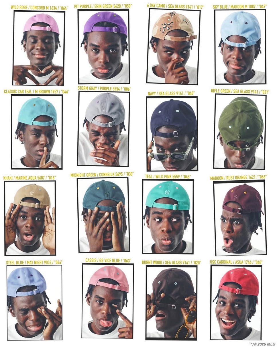 一部カラーでは、昨年瞬く間に店頭から姿を消したMLBロゴを絶妙な角度で傾けた“degロゴシリーズ”を採用。NEW ERAが培ってきた実績あるボディカラーに、JSならではのストリートなウィットが融合し、定番の裏側にミスチーフを忍ばせた、被るだけで楽しく、後ろ姿まで抜かりない、まさにコーディネートの主役となる一品となっている。