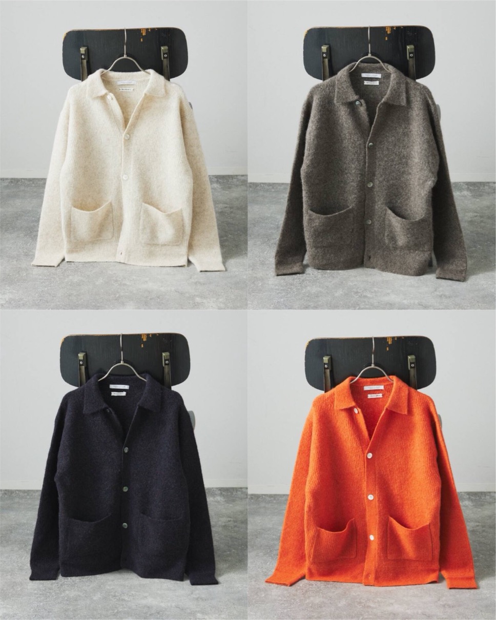 ヤクとアルパカをブレンドした上質なニットを使用し、変形タック編みによる立体的な凹凸感が特徴のカーディガンが登場。軽さと暖かさを兼ね備え、柔らかくチクチクしにくい快適な着心地を実現。自然な深みのある色合いや、ほんのりとした光沢感もヤクアルパカならではの魅力。新型の襟付きデザインは、1枚で羽織としてもインナーとしても使いやすく、着こなしの幅を広げてくれる。シルエットは大きすぎず小さすぎない絶妙なバランスに調整し、シーズンを問わず活躍するベーシックな一着に仕上げている。カラーはナチュラル、ブラウン、ネイビー、オレンジの4色が展開。