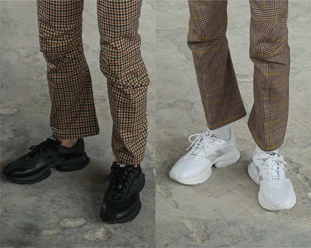 のテーマは、「古いのに新しいと感じるもの、また古いものを再現する過程で生まれた新しいもの」。温故知新な考え方を出発点に、ヴィンテージ加工を施した素材や古風なモチーフを駆使して“新しさ”を追求。コレクション内で公開された新型スニーカー『TF100』は、「ワープドランナー(WRPD Runner)」を彷彿とさせるシルエットが特徴的なフューチャリスティックな一足。メッシュやレザーを滑らかな線で繋ぎ、足元には思わず目を奪う形状の二重ソールを搭載。カラーはオールホワイトとオールブラックの二色が展開する。
