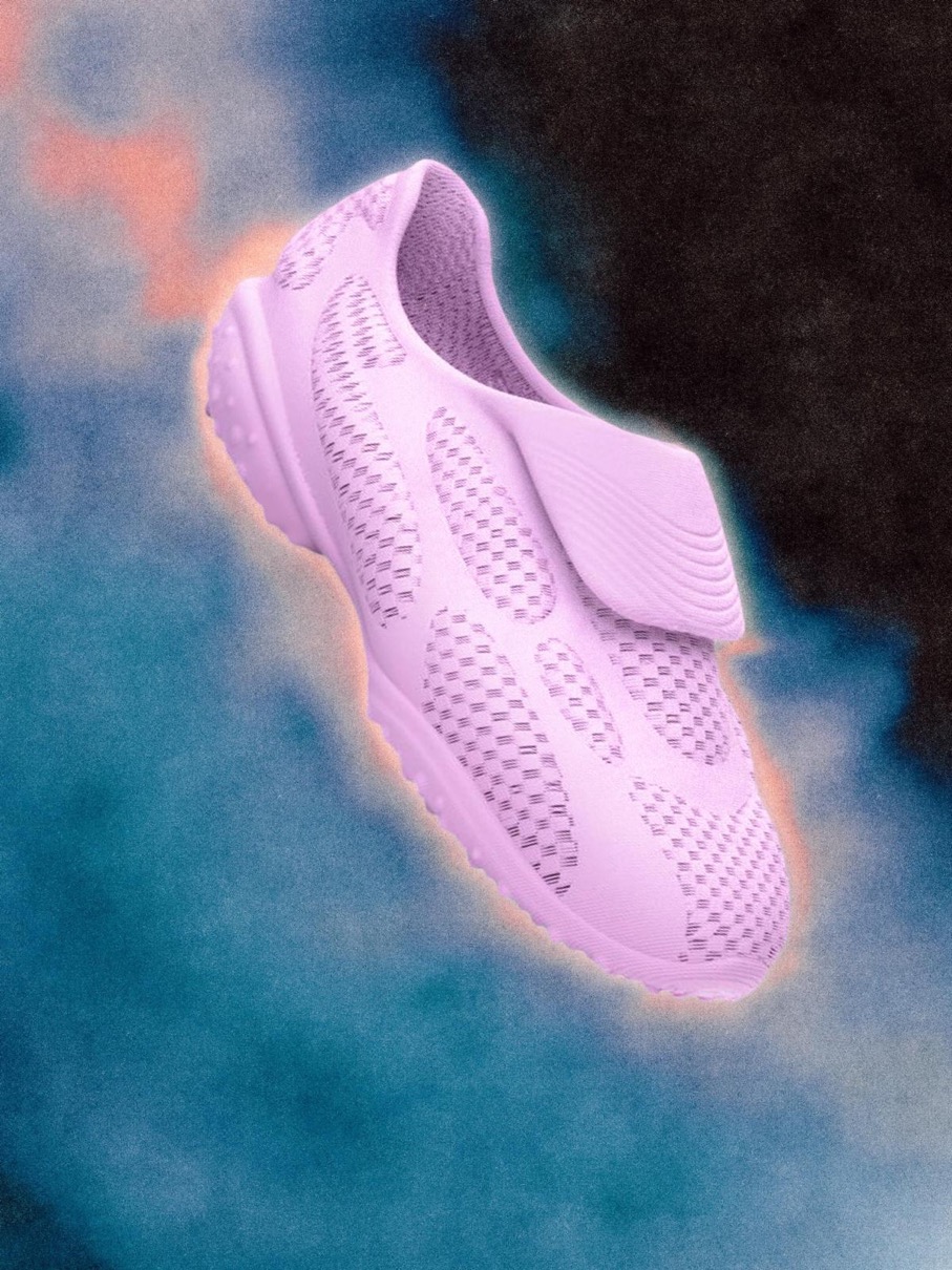 また、シグニチャーのSKYLRK Rest Slipper(レストスリッパ) に、ヘイリー・ビーバーと共に開発した初のカラー「Hailey Gray」が世界初登場。さらに、Zellerfeld(ゼラーフェルト) との協業による3Dプリントシューズ Earth Bender の新色「Lilac」も発売。