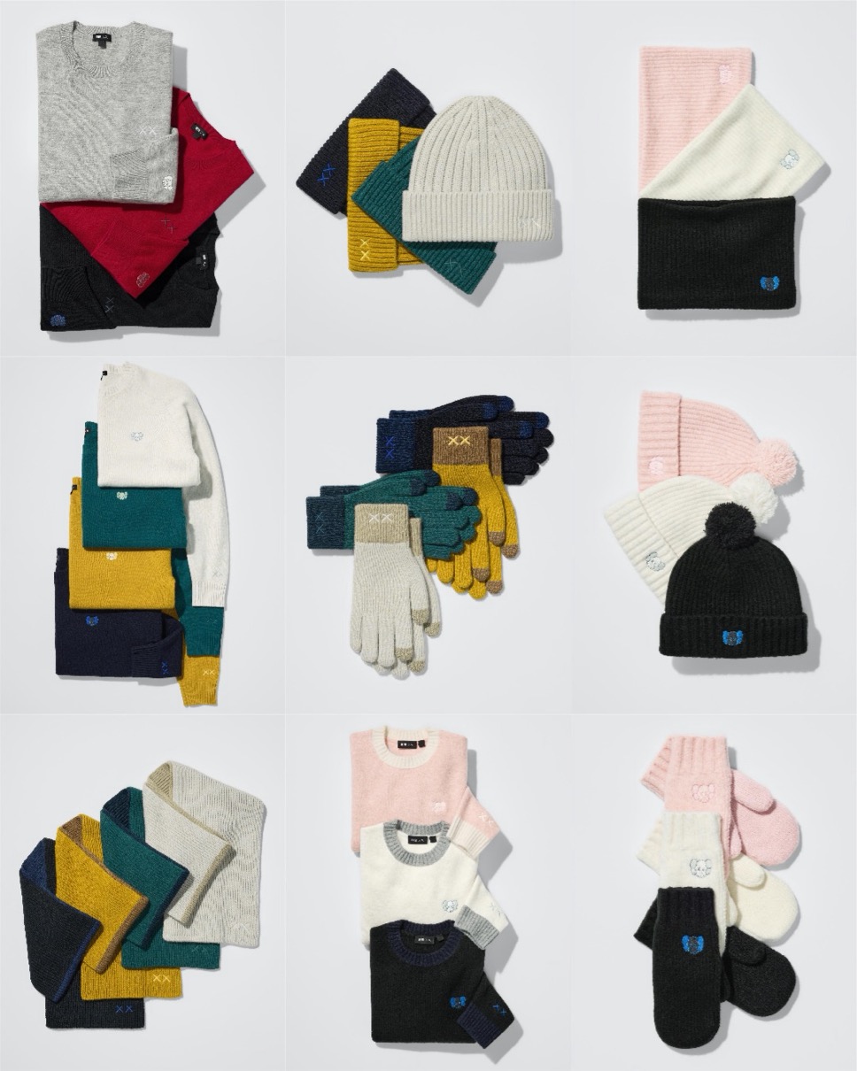 『KAWS WINTER』では、KAWSのシグネチャーであるXXマークや象徴的なコンパニオンキャラクターをあしらった、冬の必須アイテムがラインナップ。大人用アイテムには、カシミヤクルーネックセーター、ラムズウールのクルーネックセーター、ヒートテックニットグローブ、ヒートテックビーニー、ヒートテックニットスカーフを用意。キッズアイテムには、スフレヤーンクルーネックセーター、ヒートテックスフレヤーンニットミトン&ニットキャップ&ネックウォーマーといった暖かく過ごすためのプロダクトを展開する。