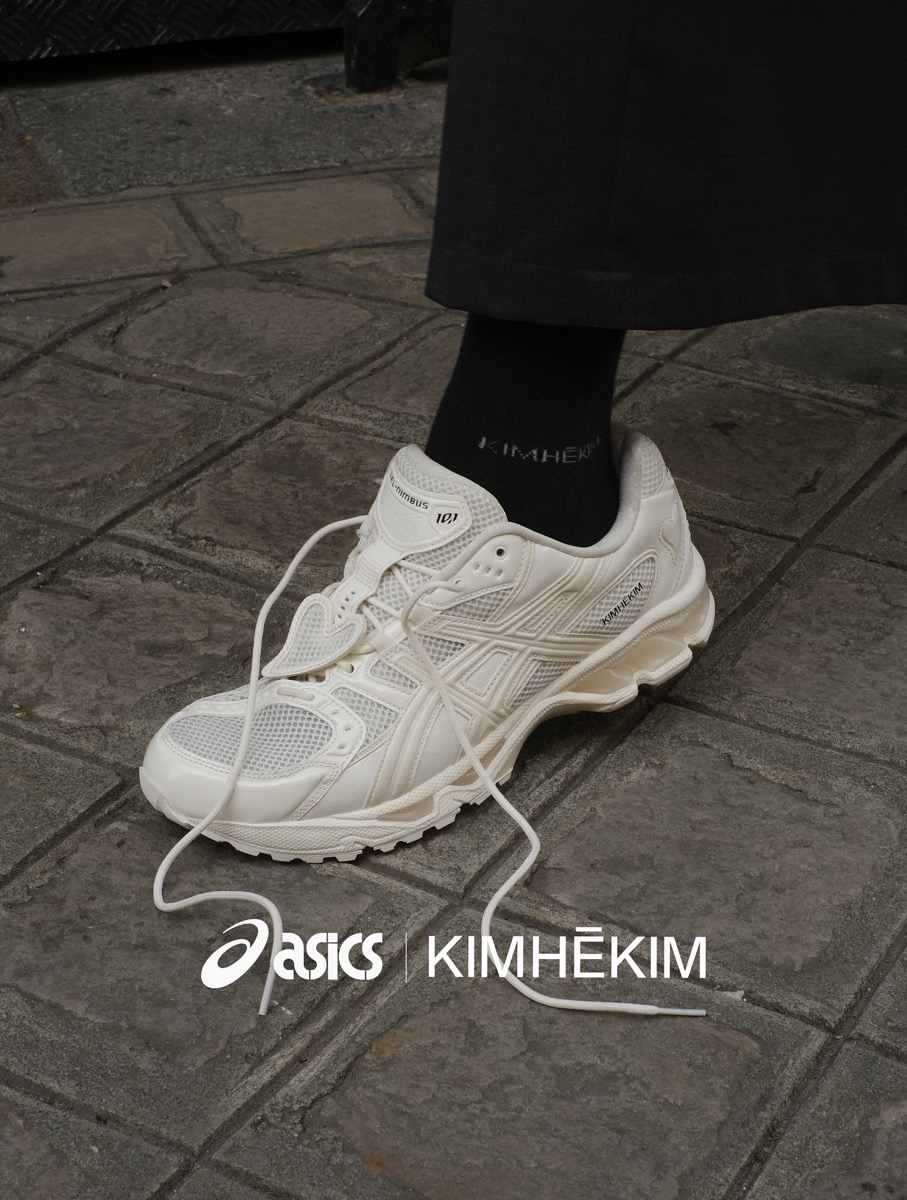 KIMHEKIMの2026年春夏コレクションにて、アシックスとの新作コラボスニーカーが発表。モデルは、2008年に初登場した GEL-NIMBUS 10(ゲルニンバス 10)をベースとし、現代的に再解釈したアップデートモデル『GEL-NIMBUS 10.1(ゲルニンバス 10.1)』。ニンバスシリーズの「NIMBUS」はラテン語で“雲”を意味し、文字通り走りを軽く、軽快に感じさせてくれるシューズとして愛されてきた。今作では左右非対称のアッパーデザインや特徴的なオープンメッシュなど、2000年代後半に登場したシューズの象徴的なディテールを再現。これは元々、足の自然な骨構造に対応するために設計されたもの。足元にはGEL-KAYANO 14ミッドソールのデュアルレイヤーEVAフォーム、GEL™テクノロジーインサート、TRUSSTIC™システムを備え、高度なクッショニングとサポートを提供するために設計。