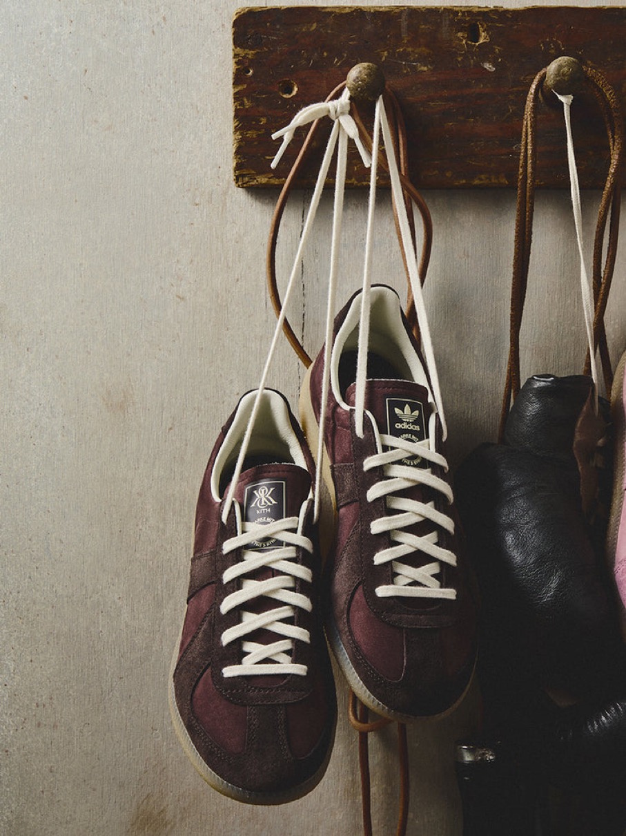 Kith Classicsとadidas Originalsは、Spring 2026シーズンに再びタッグを組み、BW Army(BWアーミー) を4つのシーズナルカラーで展開。さらに、アップデートされたブランディングを施した Samba(サンバ) と Japan(ジャパン) も復刻する。Kithは、adidasのヘリテージモデルであるBW Armyを、レザー、ヌバック、スエードといったプレミアムな素材を用いて再構築。カラーは、Raw Desert & Cardboard、Tent Green & Aero Green、Wonder Orchid & Magic Mauve、Aurora Coffee & Shadow Brownの春らしい4つのバリエーションで展開。すべてのモデルには、トーナルなオーバーレイ、ホワイトのシューレース(替え紐付き)、プレミアムレザーのフットベッドを採用し、シュータン、インソール、ヒールには共同ブランディングが施されている。本作は、1970年代にルーツを持つBW Armyを、Kithが独自の解釈を加えた初の試みとなる。象徴的なスリーストライプスをあえて排しながら、控えめなブランディングによって新たな表情へと昇華されている。