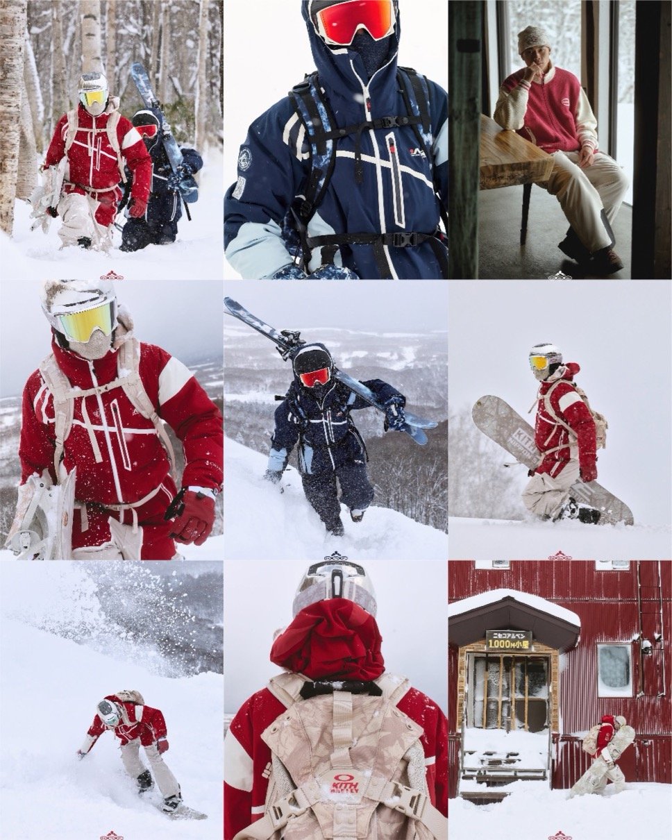 最後に、Kith は長年のパートナーである Oakley とともに、本コレクションに合わせたアクセサリーラインも発表。フルアジャスタブル仕様の MOD5 Helmet をはじめ、Flow Scape Goggles、Cybr Dyno や Eye Jacket Redux といったサングラスシルエットを、Kith 限定カラーで展開。3色展開の Icon Backpack は、日常使いから長時間の使用まで対応する広々としたメインコンパートメントに加え、メディアポケットや安心して使えるクロージャーを備えています。さらに Kith for Oakley のラインアップは、ガントレットミトン および グローブ、ニットバラクラバ、フリースネックゲイター、メリノブレンドの Patrol Socks へと広がり、快適さを損なうことなく高い保温性を実現している。