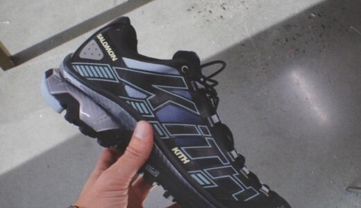 Kith for Salomon XT-4Kは、Salomonのアイコニックなトレイルシューズ『XT-4』をベースにリデザインした特別仕様のモデル。このデザインの最大の特徴は、XT-4のTPUオーバーレイにシームレスに組み込まれたKithのワードマークロゴ。さらに、サイドパネルとタンにはKithのブランドロゴ、ヒールとソックライナーにはコラボレーションを象徴するKith for Salomonのロゴを配置している。カラーは現在ホワイトとブラック、ブラック/ブルーの3色が公開されている。