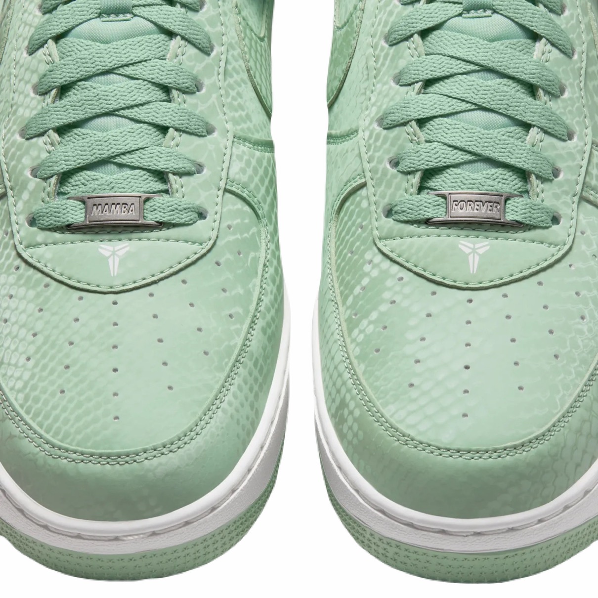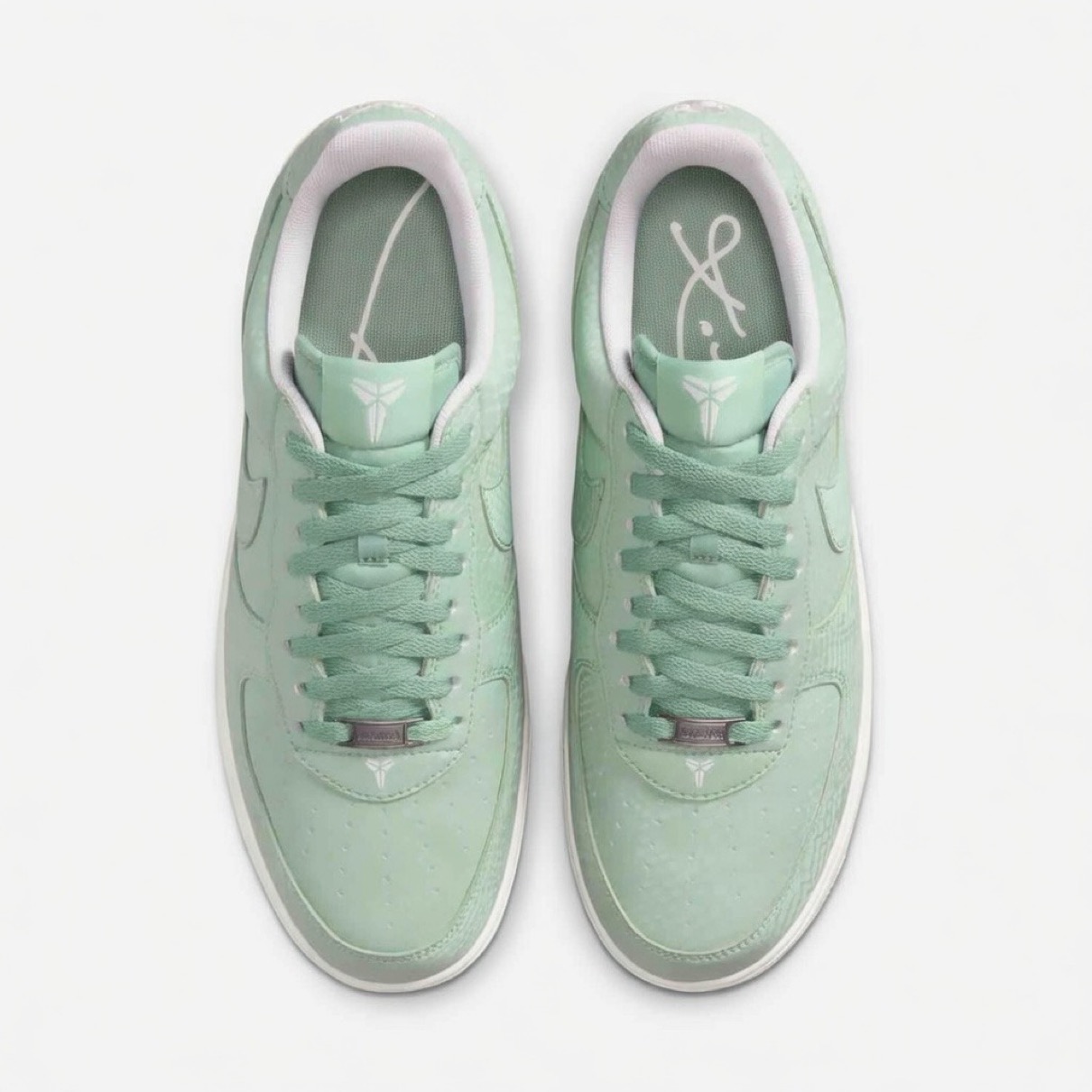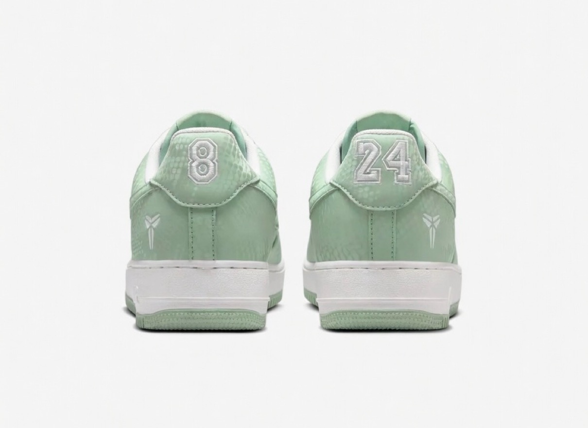 今回登場するのは、世界最強の毒を持つ毒蛇「ブラックマンバ(Black Mamba)」の愛称で知られる元NBAレジェンドバスケットボールプレーヤー『コービー・ブライアント(Kobe Bryant)』が掲げていた不屈の精神『Mamba Mentality(マンバメンタリティ)』にインスパイアされた新作。結末にこだわらず、とにかく努力し、戦う。そんな最強メンタルを表現した一足では、シュータンのロゴはコービーのシースロゴに変更し、ヒールパッチのロゴ刺繍はコービーの現役時代に付けた背番号『24』と『8』にアレンジ。スネーク柄が浮かぶアッパーのカラーは淡いスチームグリーンにホワイトのアクセントで仕上げている。