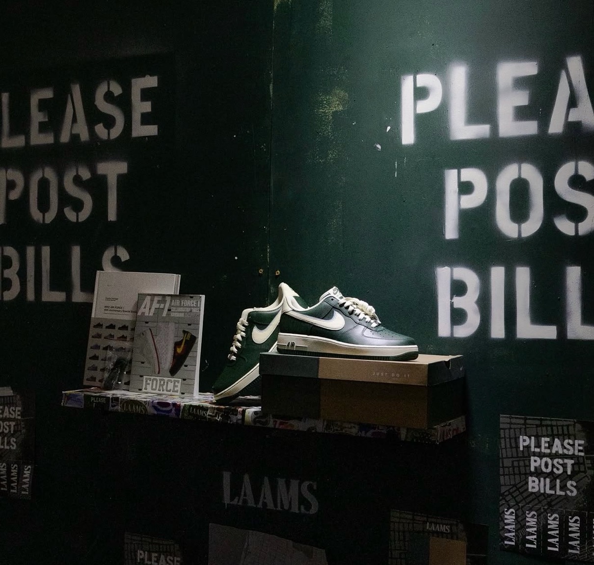 ニューヨークのロウアーイーストサイドにあるセレクトショップ「LAAMS(ラームス)」と「Nike(ナイキ)」によるコラボスニーカー Air Force 1 Low “Please Post Bills”が、現地時間2025年12月6日よりLAAMSで先行発売。海外SNKRSでは12月13日から発売予定。