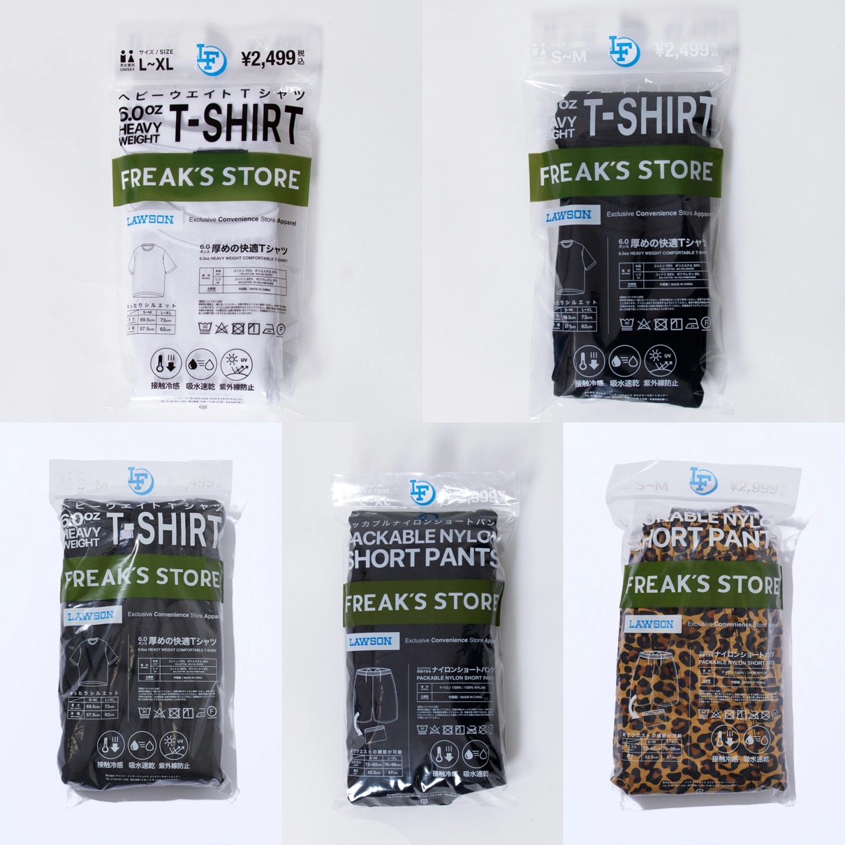 ローソン x フリークスストア によるコラボから新作Tシャツ&ヒョウ柄ナイロンショーツが登場。