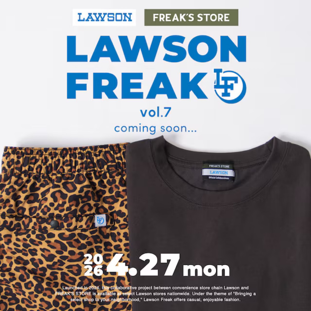 コンビニエンスストア『ローソン(LAWSON)』と、全国に50店舗以上を展開するセレクトショップ「FREAK’S STORE(フリークスストア)」がコラボレーションアイテム第7弾が、国内2026年4月27日(月)より発売される。