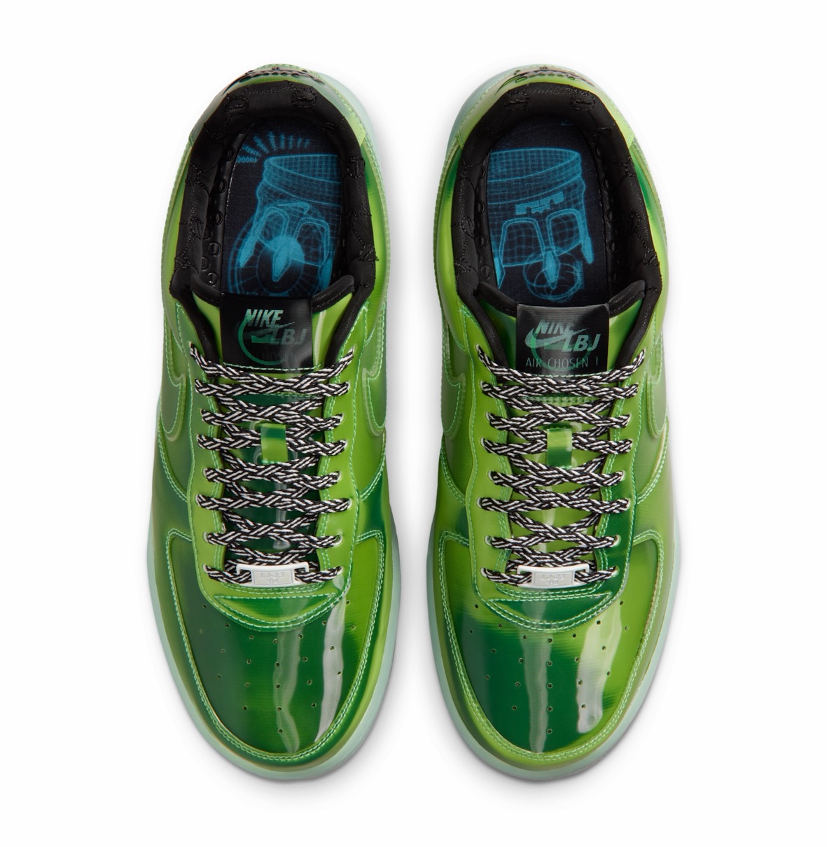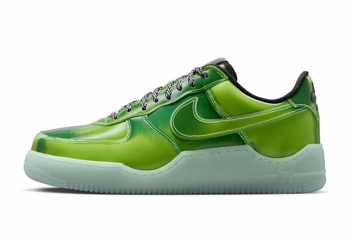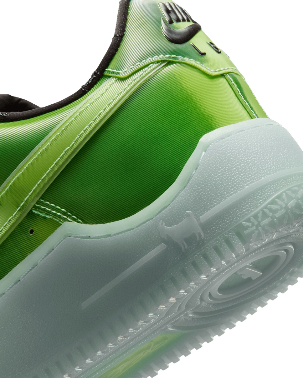 今作ではレブロンのLAとの繋がりを祝し、ハリウッドの魔法を象徴するグリーンスクリーンをイメージしたAF1をデザイン。レンズ状のアッパーは動きに合わせて変化し、暗闇で光るソールとスウッシュの輪郭が鮮やかなコントラストを添える。大胆なシューズ内部には、特殊効果のレンズを通して見えるキング・ジェームズの王冠をあしらったソックライナーを採用。ドロップインフォームミッドソールとヒール部のズームエアを搭載し、驚異的な快適性を実現している。