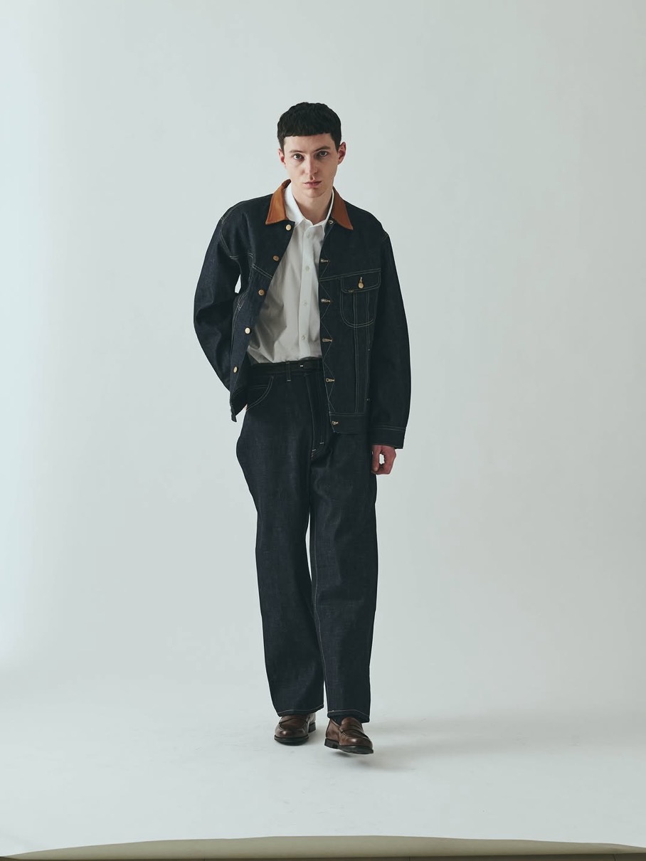 101-J ジャケットは、RIDERSシリーズのフラッグシップモデルに位置づけられて以降、ブランドを代表するデイリーウエアへと発展し、デビューから半世紀以上が経過した今日もなお、大きな仕様変更もなく継続展開されている。本作ではそんな101-Jをベースによりモダナイズ。もともとショート&タイトなシルエットを着丈と身幅共にズームアップし、デニムはリジット、襟はレザーをチョイスした事で、ワーク由来の武骨さと現代的なムードがバランス良く共存したプロダクトに。今年は101誕生から数えて101年目となる節目のアニバーサリーイヤー。その記念すべき年に相応しい、スペシャルな別注モデルとなっている。