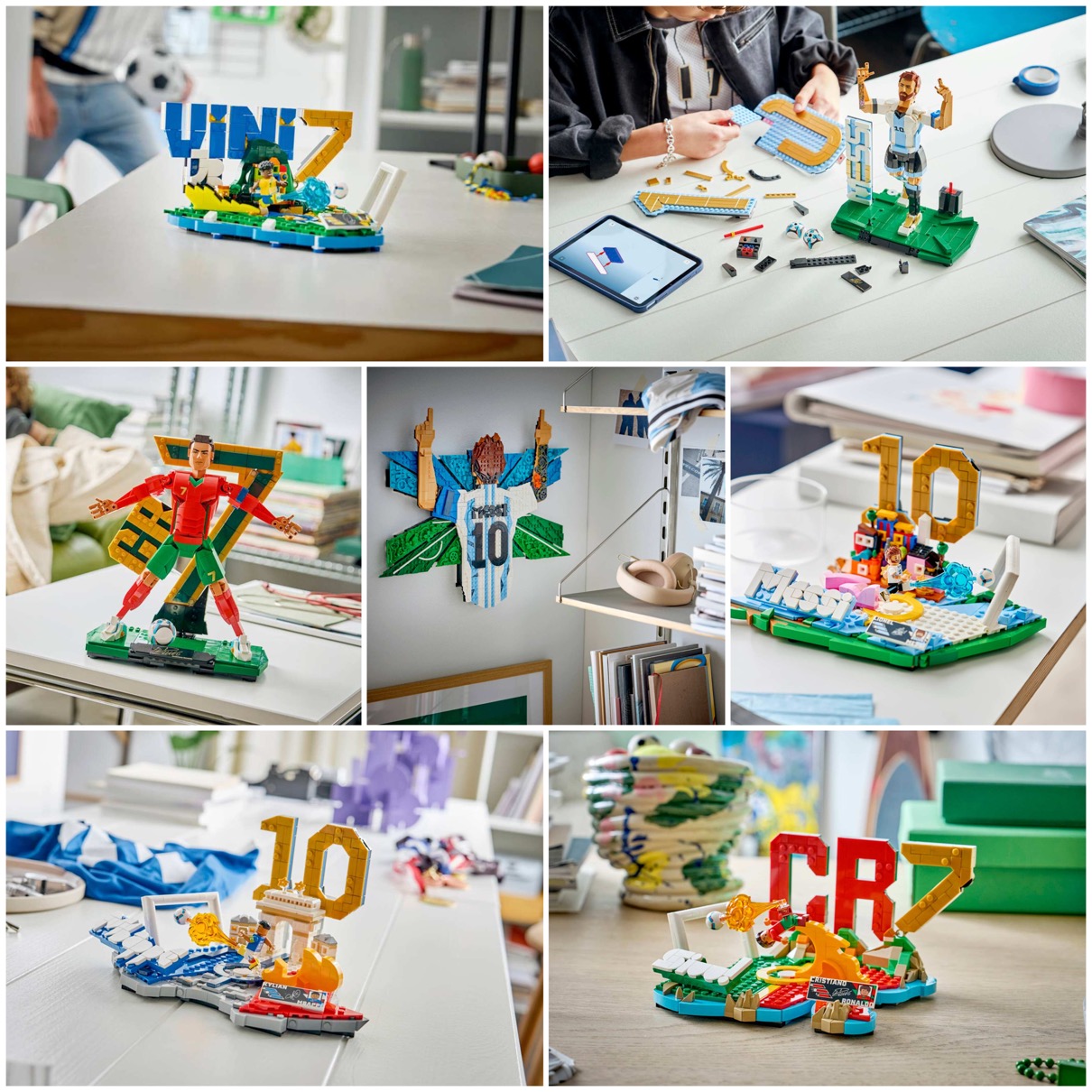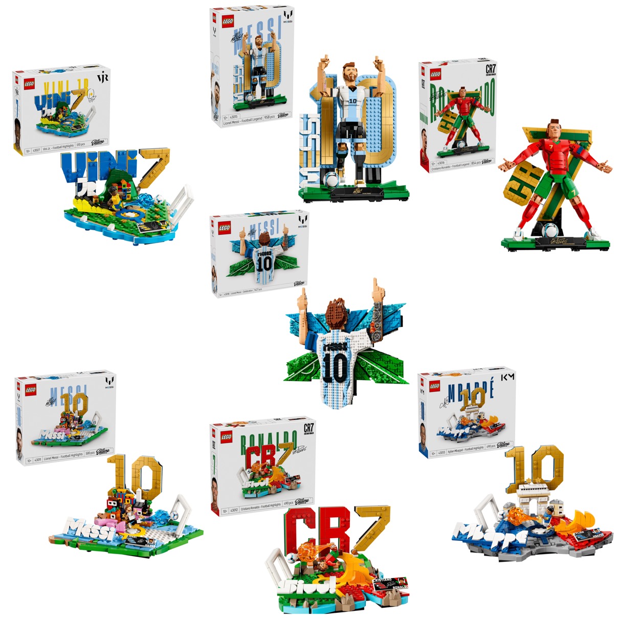 レゴブロックが、サッカー界の4名のスター選手、クリスティアーノ・ロナウド、キリアン・エムバペ、リオネル・メッシ、ヴィニシウス・ジュニオールとのコラボレゴ®︎セット7製品を発表。