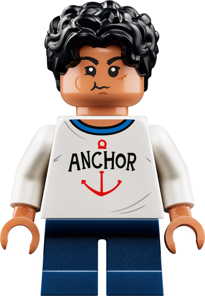 • ミニフィギュア2体 – 上部を開くゴムゴムの実には、子ども時代のモンキー・D・ルフィと、左右に腕を伸ばせる大人のルフィのミニフィギュアが付属