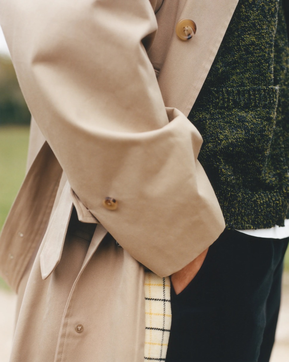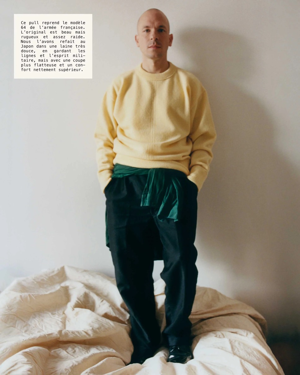 フランス軍の「モデル64」をベースに作成。オリジナルは造りの良さが光る一方で、質感が粗く、かなり硬さのある着心地。その特徴的なラインやミリタリーの精神を残したまま、日本の非常に柔らかなウールを使って再構築し、より体をきれいに見せるシルエットと、格段に快適な着心地を備えた現代的な一枚に仕上げた。
