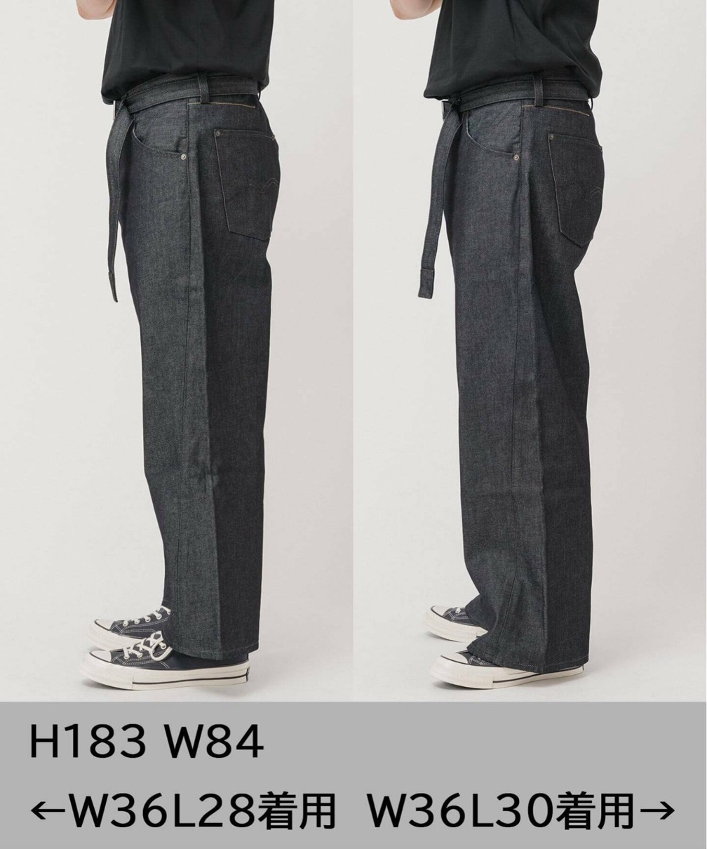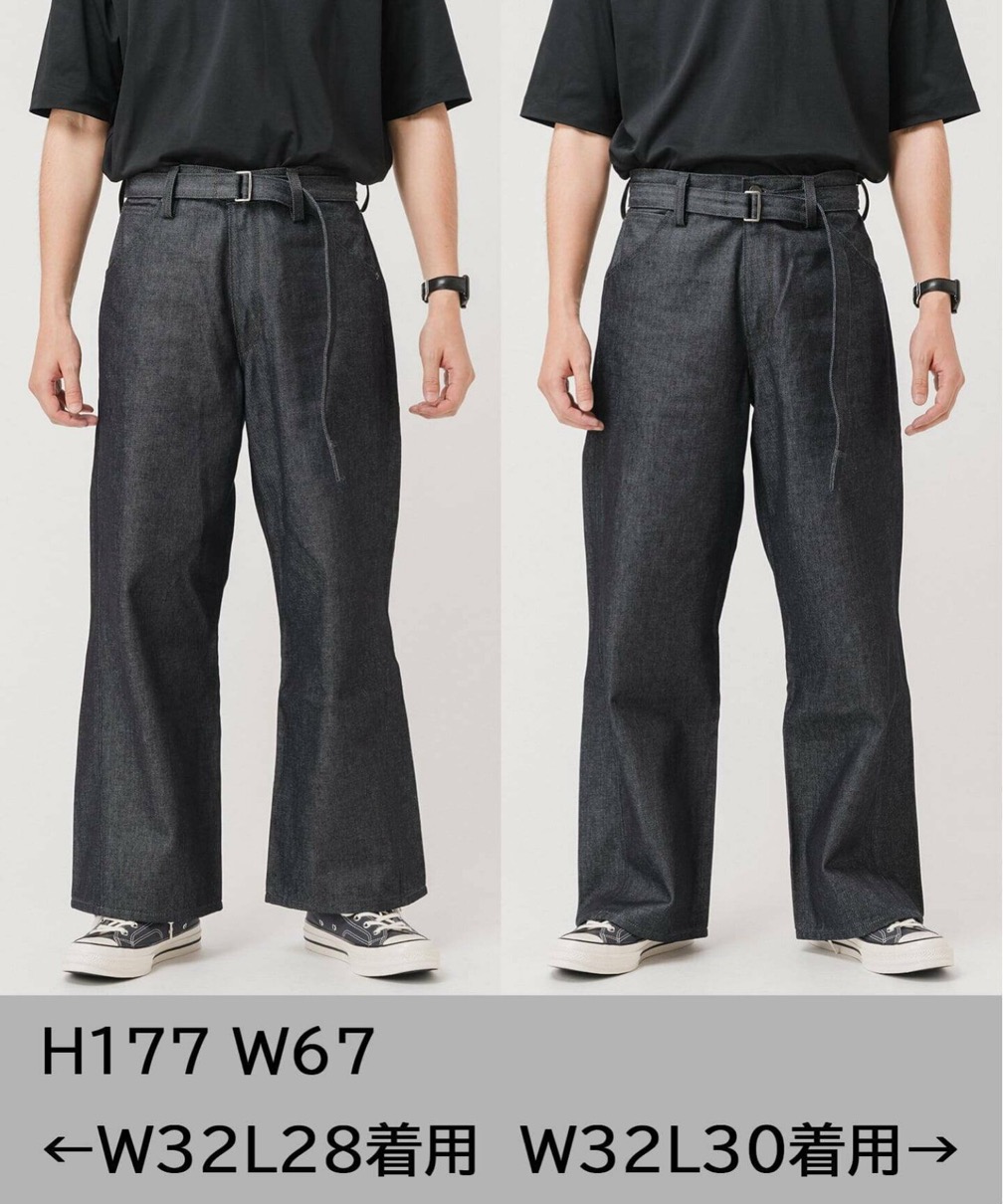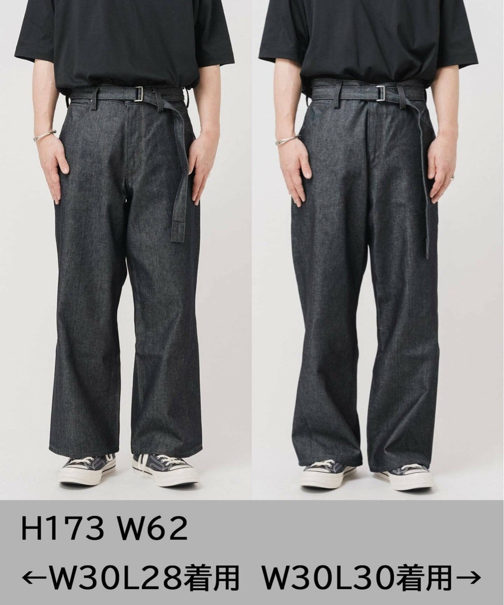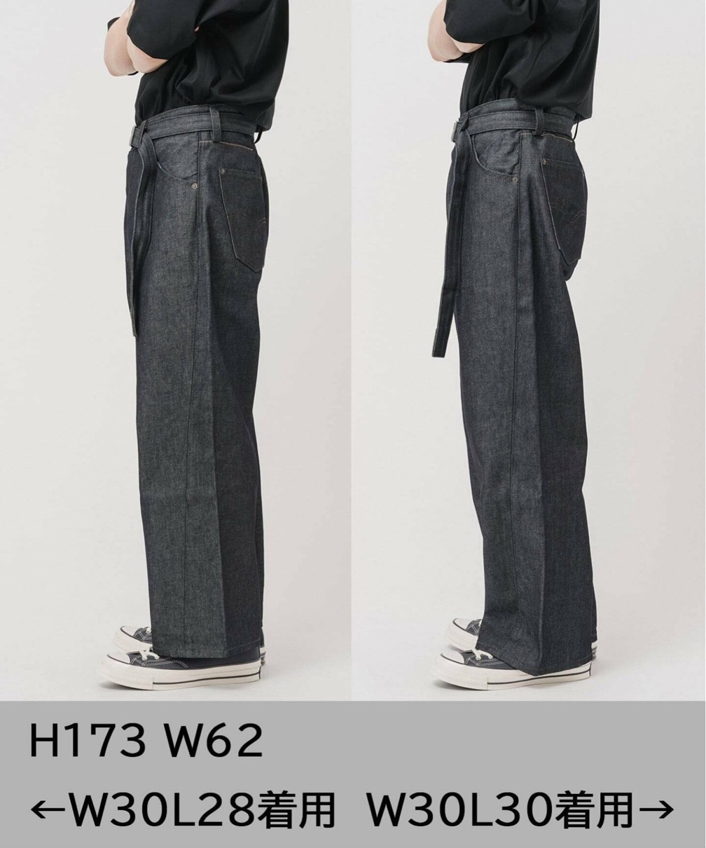 パターンに巧妙に取り入れた“捻れ”が、ヴィンテージデニムの味わい深さを現代的にアップデート。内側のシームラインがワイドシルエットに絶妙なメリハリを生み、すっきりとした美しいフォルムを実現。共地ベルトは、さりげなくスタイルにリズムを与えるアクセントとして機能。シンプルながら存在感のある一着、レングス(丈の長さ)はL28とL30の2種類が展開する。