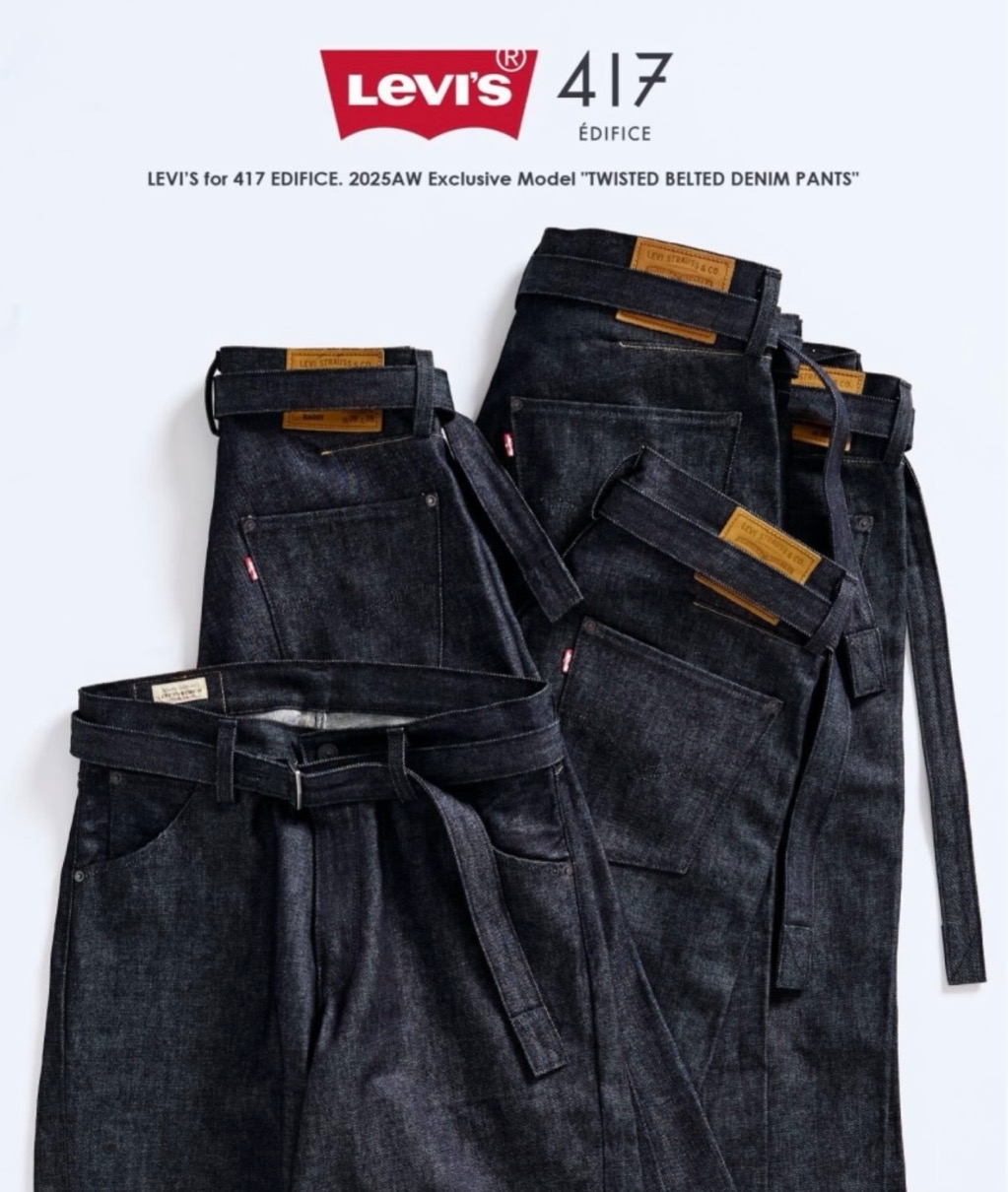 アメリカ発のキング・オブ・デニムブランド「Levi’s(リーバイス)」と、株式会社ベイクルーズが運営する「417 EDIFICE(417エディフィス)」による新作別注アイテム『TWISTED BELTED デニムパンツ』のオンライン先行予約が数量限定で開始。一般発売は国内2026年4月から。