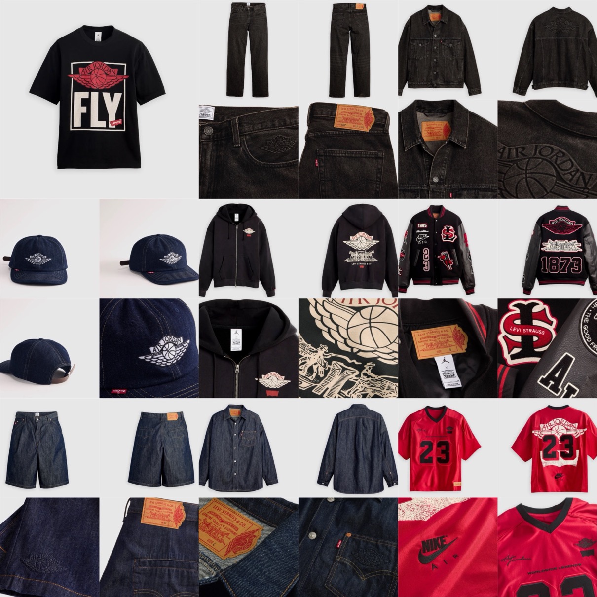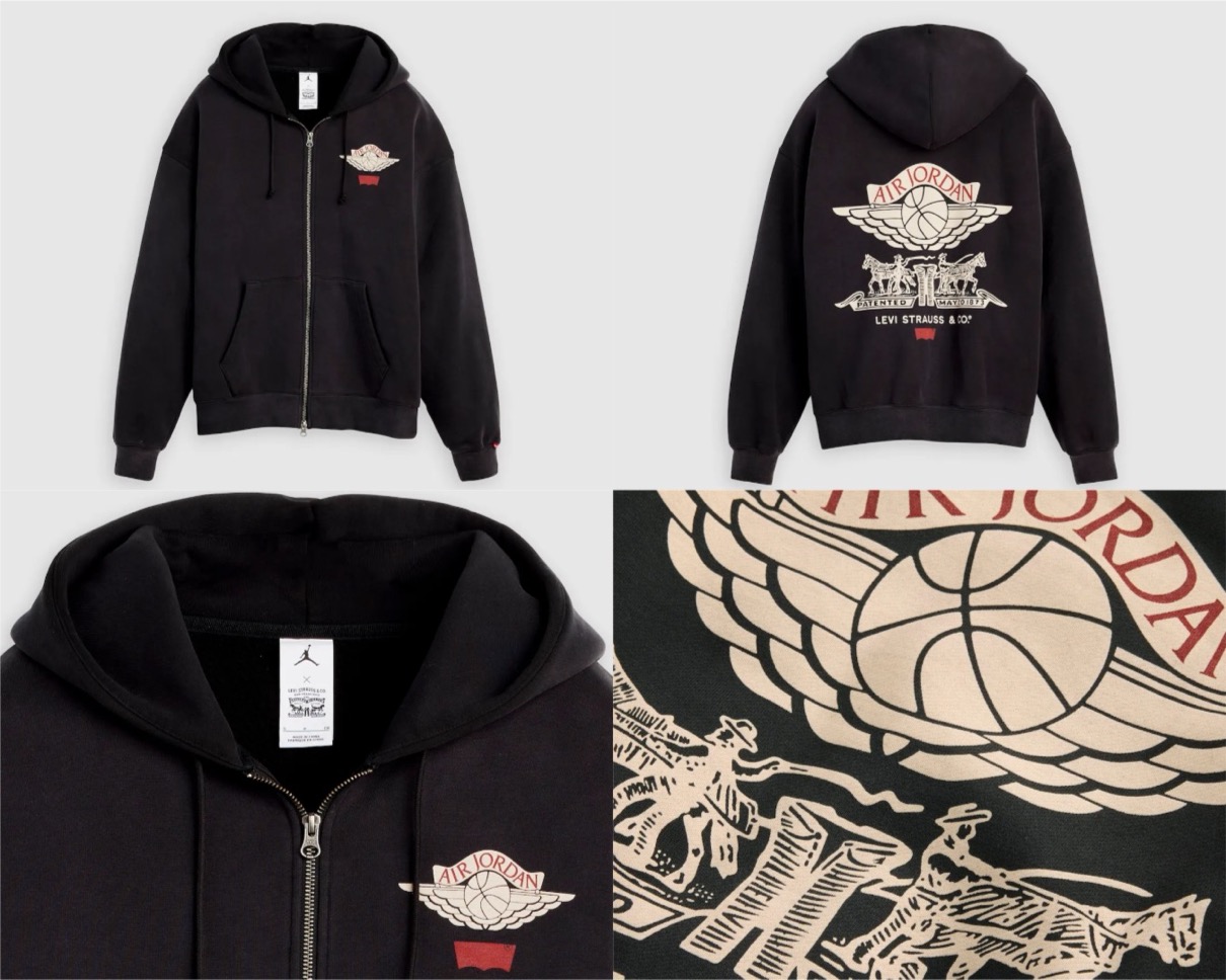 エクリュデニムは、干支を表現したスペシャルなソックライナーと、ジャカード織のヒールタブ、レッドのインソールを装備。さらに、Levi’s®を象徴する1ドル紙幣のグラフィックとレッドタブがスタイルを完成させる。さらに、両者のグラフィックを落とし込んだジップフーディーやヴァーシティジャケット、半袖フットボールジャージ、デニムトラッカージャケット、デニムシャツ、ショーツ、ジーンズ、Tシャツ、デニムキャップなどのアパレルコレクションもリリース予定。