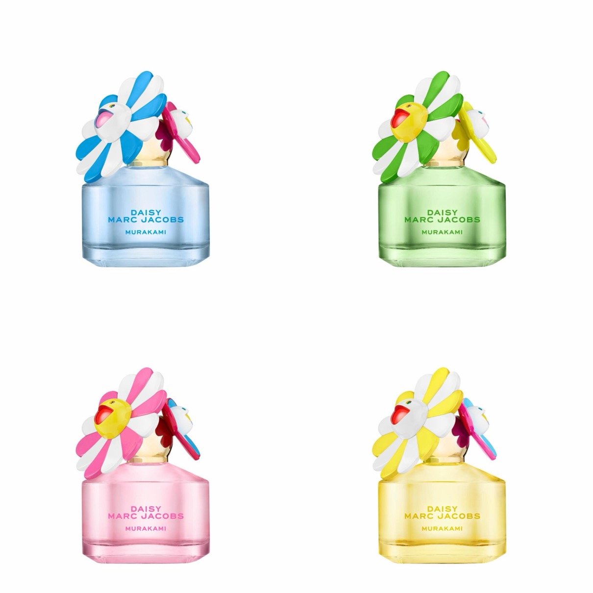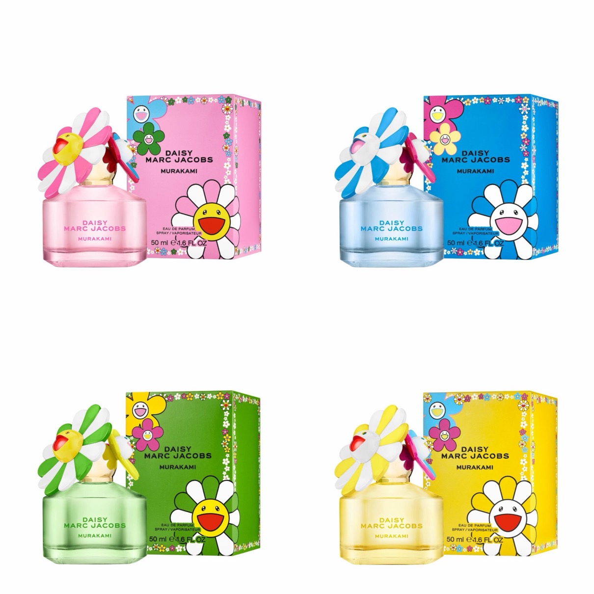 香りは4タイプがラインナップし、ボトルはコレクション性の高いアートピースで、光沢のある輝き、村上隆の象徴的な花とジェイコブスのアイコニックなデイジーを組み合わせたクラシックなシルエットが再解釈されている。マーク ジェイコブス、村上隆、コティによる共同デザインで、二人のアートアイコンのエッセンスが超現実的な花の形で融合。