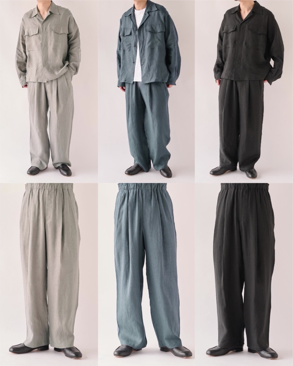 マーカ x ステュディオス 2026年春夏 リネン60番単糸を平織りで仕立てたトロピカル素材を使用した、涼しげなファティーグシャツとワイドイージーパンツが登場。【2026SS】