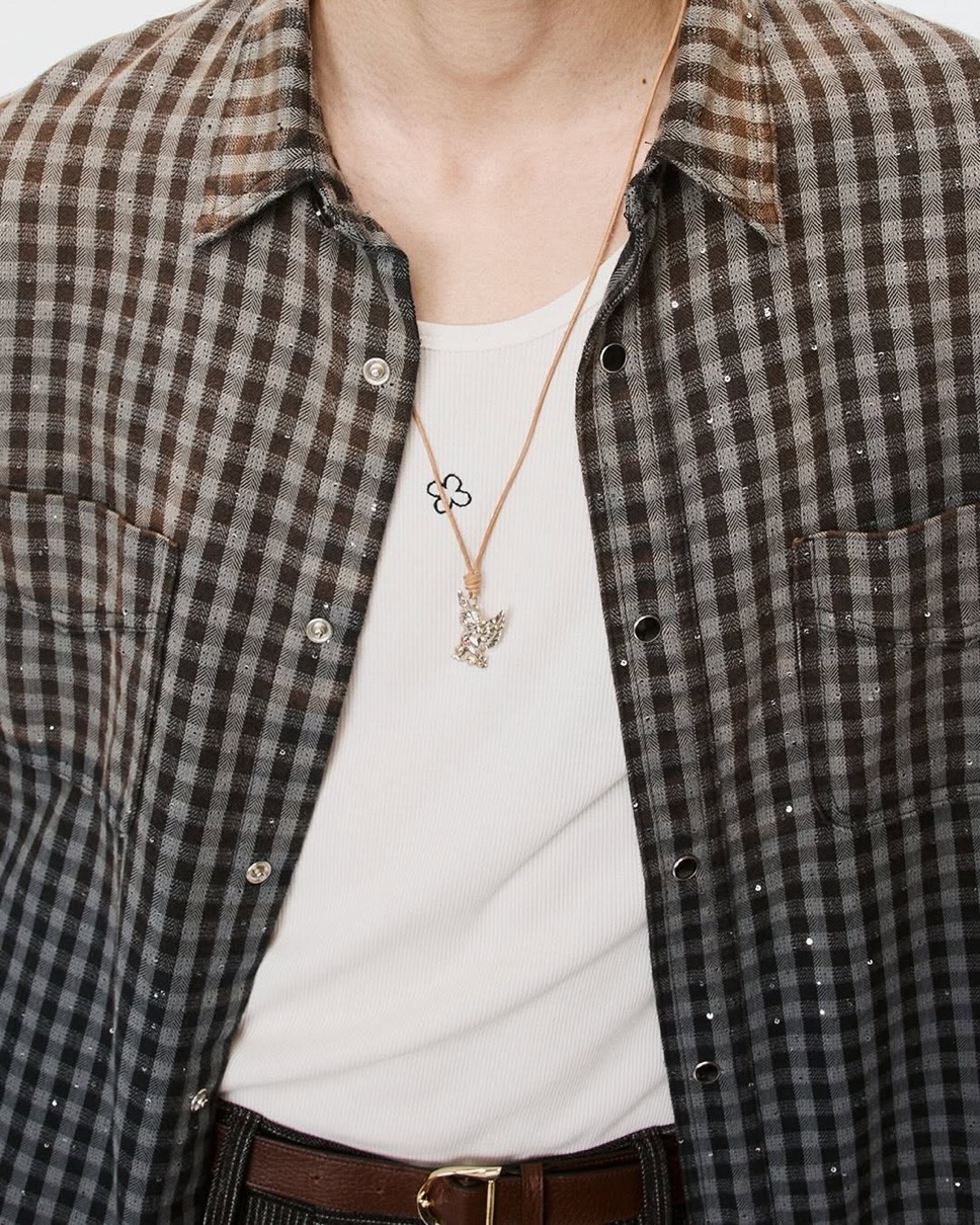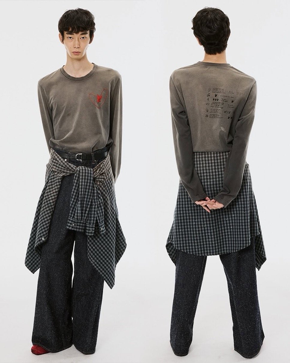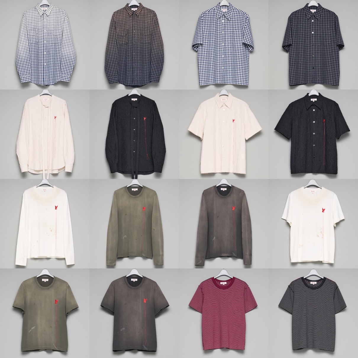 「2026年春夏は、計算され尽くした世界、言わば、予定調和に対する最後の反逆である」──「in the raw」と題された今季のM A S Uには、こんな言葉が寄せられている。「計算され尽くした世界」、それは、対象を合理的・経済的に扱うべく、物ばかりか人、その内面をも数量化し、画一的にモデル化し、そのシステムに従って予測を行う、近代的な世界である。そこで数量的な体系にそぐわぬ要素は、ことごとく零れ落ちることになる。今回のDropでは、左胸に天使の刺繍が施されたヴィンテージ風ロングスリーブTシャツや、フェーデッドチェックシャツなどがラインナップ。