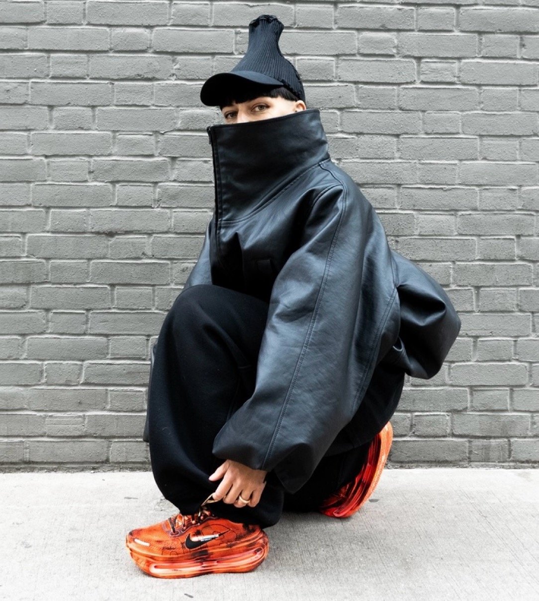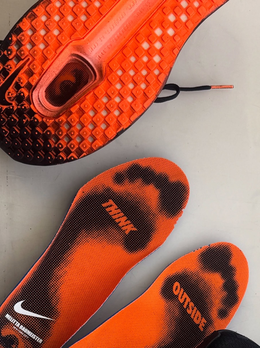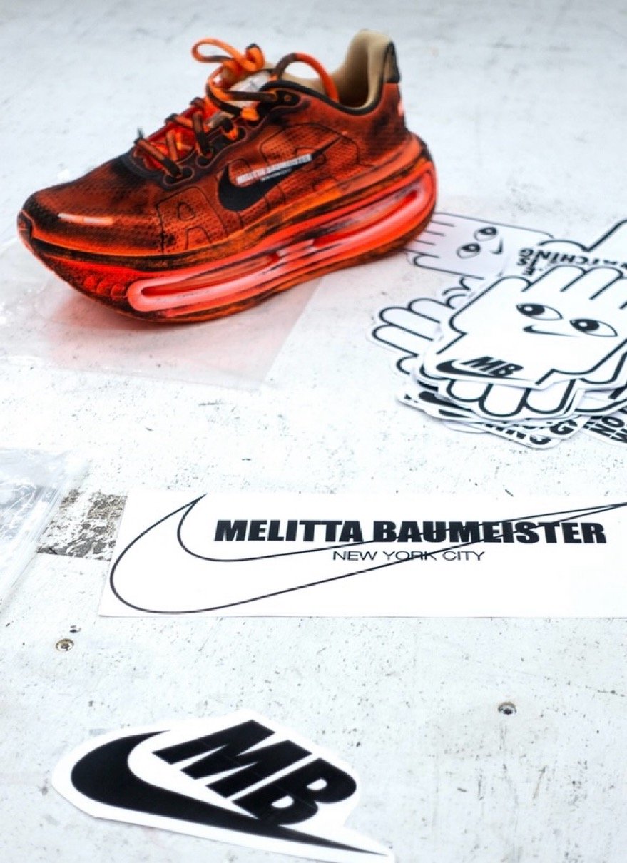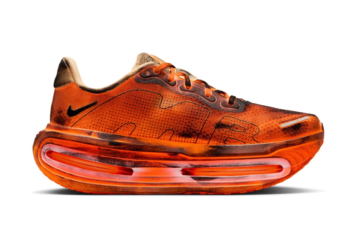今回のコラボレーションモデルでは、バウマイスターの彫刻的アプローチを反映した焼け焦げたような美学で、ナイキのデザインを実験的な領域へと押し進める。全米デザイン賞受賞の勢いそのままに、デザイナーは初のナイキプロジェクトに臨み、「Run Like No One Is Watching」カプセルコレクションの中で際立つ作品を生み出した。