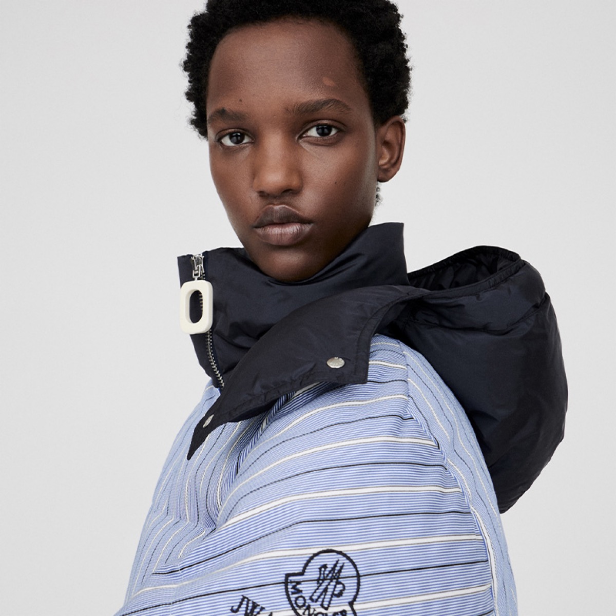 今作のシルエットは、JW ANDERSON x MONCLER のアーカイブコレクションからインスピレーションを得ている。シャツのデザインと機能性を兼ね備えたダウン入りパファージャケットは、モンクレールの専門技術と、クラシックな JWA プル、取り外し可能なフード、ロゴの刺繍など、考え抜かれたデザインのディテールを融合している。