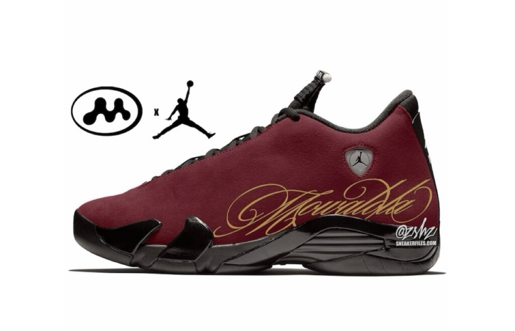 1998年に初めて発売され、マイケル・ジョーダンがCHICAGO BULLS(シカゴブルズ)時代のラストゲームで着用したことでも知られる14代目シグネチャー「Air Jordan 14(エアジョーダン14)」。ジョーダンの当時の愛車 “FERRARI(フェラーリ)550マラネロ” からインスパイアされたデザインを採用し、サイドのジャンプマンロゴエンブレム、ダクトをイメージしたミッドソールなど、随所に落とし込まれたディテールからその要素が感じられる一足。今回リークされたコラボモデルでは、アッパーをシームレスなバーントレッドのスエードで構築。アッパー全体にレーザー加工されたMOWALOLAのサインが施され、ミッドソールはブラックで仕上げられるとのこと。なお、現時点での掲載画像はモックアップとなるため、ひとまずは今後の続報を待とう。