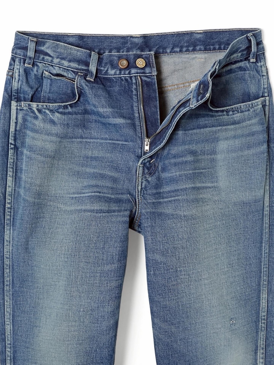2023年の初コラボ以来、継続的にコラボレーションを続けてきた両者が再びタッグを組む。今回はN.HOOLYWOODの尾花大輔氏が近年愛用しているという1960年代の約1年間のみ生産された希少なフレアシルエットの名品デニムをベースに再構築。岡山県倉敷市児島のデニム加工会社「癒toRi18(ユトリイチハチ)」と「ニューマニュアル」の卓越した加工技術でダメージやサイズ感など当時の雰囲気を踏襲しながら、ウエストに N.HOOLYWOOD と New Manualのオリジナルボタンを2つ配置。ボディには13.8ozのコットンデニムを採用し、ヒップのポケットにはN.HOOLYWOODのピスネーム、ポケットの裏からはコラボネームタグをあしらった。