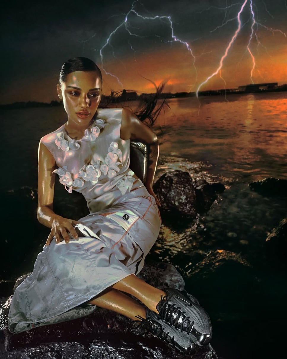 エネルギー効率の高い円柱状のスプリングコイルを備えたソールユニット「ショックスユニット」を搭載したSHOXシリーズの新型『Shox Z(ショックスZ)』に、NAKED Copenhagenとのコラボレーションモデルが登場。両者はパフォーマンスの伝統を大胆な新領域へと導き、伝統的なランニングシューズの美学を、より意図的でスタイリッシュなものへと昇華させる。斬新なアレンジシルエット Nike Shox Z Calistra では、象徴的なShoxテクノロジーを再解釈し、ハイファッションなフットウェアの領域へと移行させている。