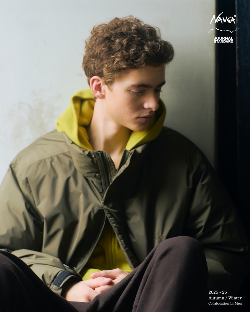 卓越した技術で知られる日本発のダウンブランド〈NANGA / ナンガ〉。2025-26年秋冬シーズンは、JOURNAL STANDARDとのコラボレーションにより、80〜90年代のヴィンテージダウンをベースに防水透湿素材 AURORA-TEX®や、脱着式フードを備えた現代的な感性で再構築。フロントのDカンやフード収納ポケットなど、アーカイブに見られる機能的ディテールを継承しながら、都市に映えるミニマルなデザインへとアップデートしている。