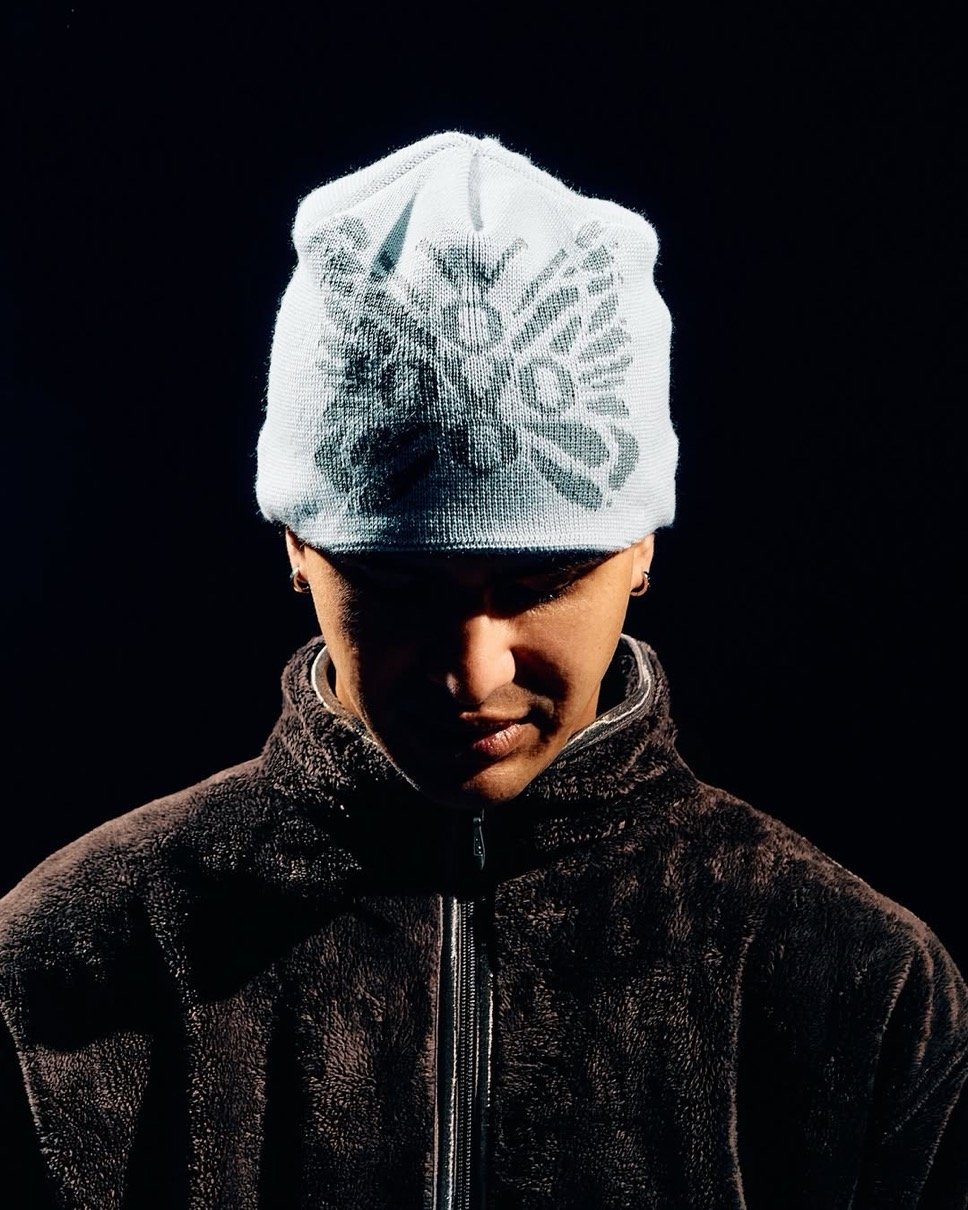 本コレクションでは、〈OCTOBER’S VERY OWN〉のアイコンであるフクロウと〈NEEDLES〉のパピヨンが象徴的に配置された「TRACK JACKET」「TRACK PANT」を展開。そのほか各アイテムにオリジナルのグラフィックを落とし込んだ、「PIPING PULLOVER」や「PRINTED SLEEVES TEE」、「JACQUARD KNIT BEANIE」など全5アイテムをラインナップする。
