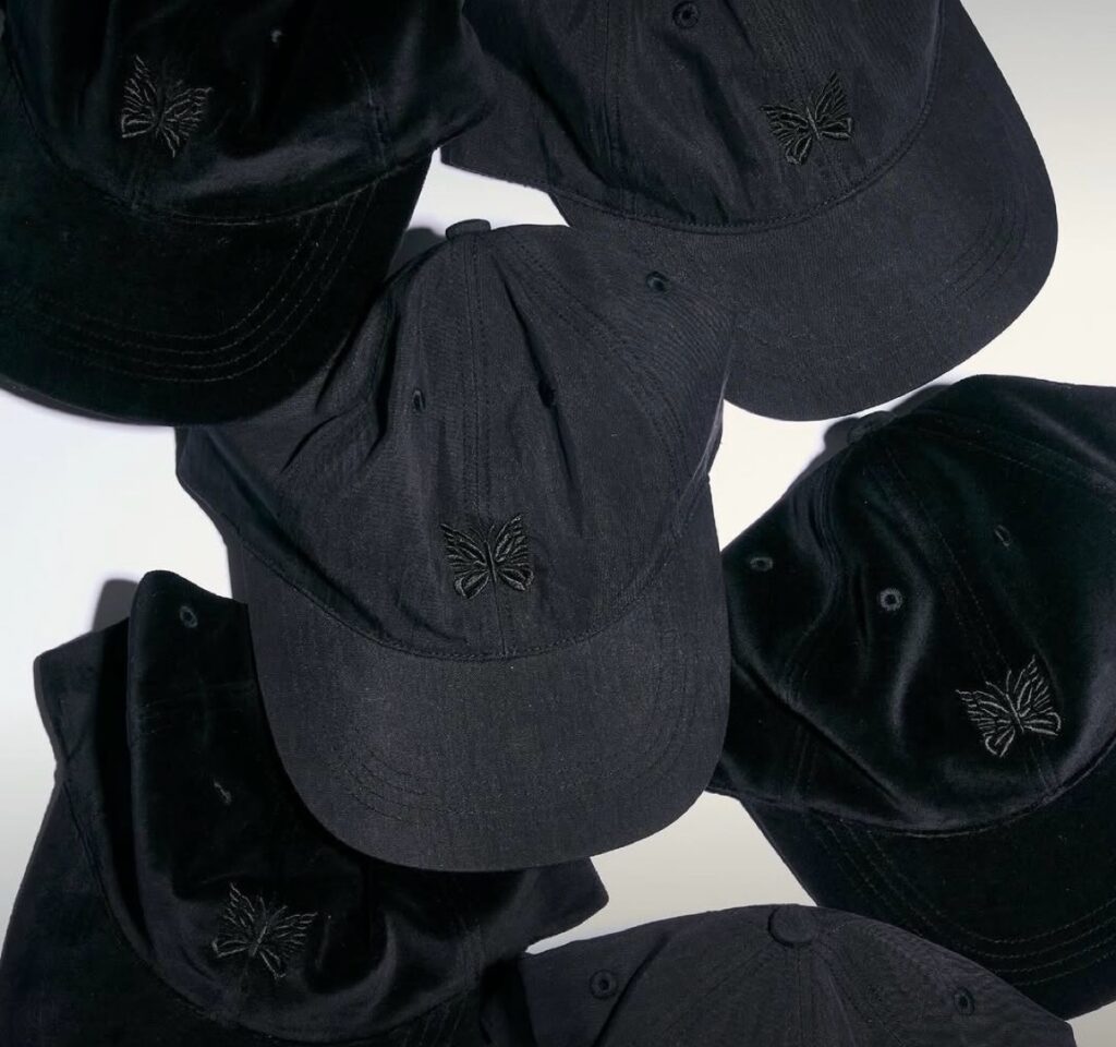 ニードルズ x ステュディオス 2025年秋冬 オールブラックのナイロン&ベロア素材キャップが登場。【2025AW】