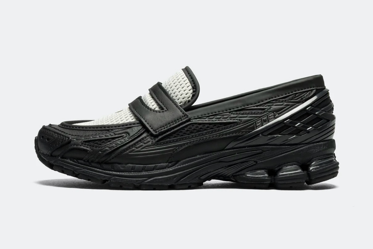 NBの新作フットウェア『1906L』では、NBのランニングシューズ『1906R』をコインローファー風に再構築し、通常1906Rのアッパーに搭載されるN lock(エヌロック)システムを撤廃。クラシックなローファーのディテールをドッキングし、ソールには衝撃吸収素材であるABZORB(アブゾーブ)、N-ergy(エナジー)クッショニングを組み合わせ、踵にはTPU素材を用いたヒールサポートを用いて快適な履き心地を提供。アッパーは艶感のあるクロコダイル型押しレザーで構築し、ヴァンプに“N”、ヒールサイドには“1906L”のロゴを配置。カラーはブラックのレザーアッパーとミッドソールに、メリハリの効いたアンゴラホワイトのメッシュヴァンプ&タンで仕上げている。