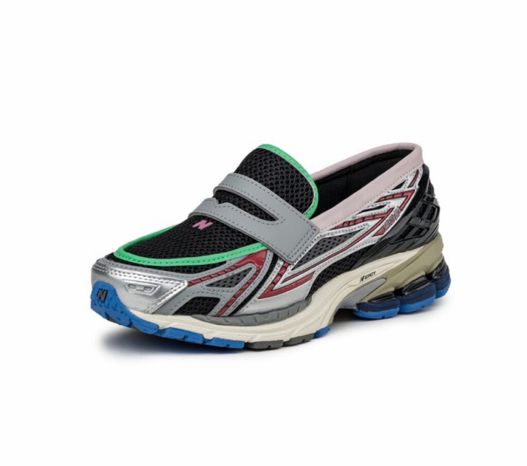 NBの新作フットウェア『1906L』では、NBのランニングシューズ『1906R』をコインローファー風に再構築し、通常1906Rのアッパーに搭載されるN lock(エヌロック)システムを撤廃。クラシックなローファーのディテールをドッキングし、ソールには衝撃吸収素材であるABZORB(アブゾーブ)、N-ergy(エナジー)クッショニングを組み合わせ、踵にはTPU素材を用いたヒールサポートを用いて快適な履き心地を提供。アッパーは艶感のあるクロコダイル型押しレザーで構築し、ヴァンプに“N”、ヒールサイドには“1906L”のロゴを配置。カラーはシルバーメタリックにブラックやグリーン、ピンク、レッドなどのマルチカラーで仕上げている。
