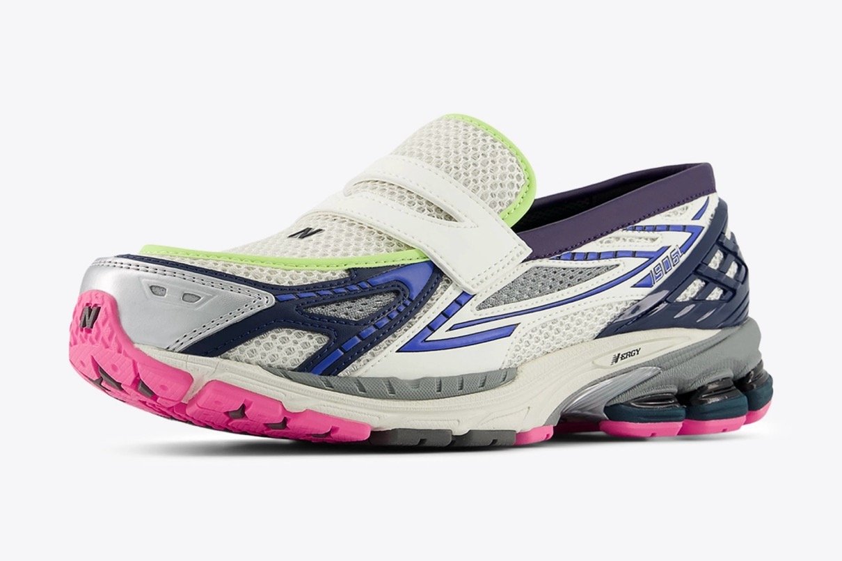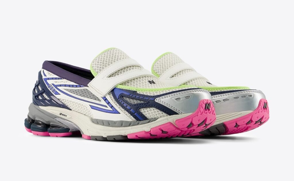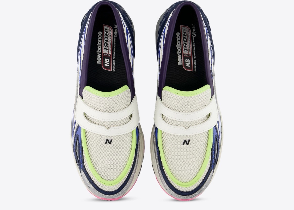 NBの新作フットウェア『1906L』では、NBのランニングシューズ『1906R』をコインローファー風に再構築し、通常1906Rのアッパーに搭載されるN lock(エヌロック)システムを撤廃。クラシックなローファーのディテールをドッキングし、ソールには衝撃吸収素材であるABZORB(アブゾーブ)、N-ergy(エナジー)クッショニングを組み合わせ、踵にはTPU素材を用いたヒールサポートを用いて快適な履き心地を提供。アッパーは艶感のあるクロコダイル型押しレザーで構築し、ヴァンプに“N”、ヒールサイドには“1906L”のロゴを配置。カラーはオフホワイトやシルバーメタリック、ネイビー、ピンク、パープルなどのマルチカラーで仕上げている。