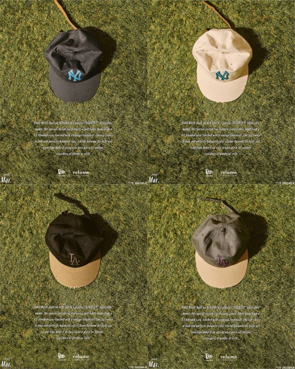 大人気別注キャップに新色が登場。人気モデル「9THIRTY(TM) Adjustable」をベースに、Los Angelesに本拠地を置くロサンゼルス・ドジャースと、NYCのニューヨーク・ヤンキースをピックアップ。ヴィンテージ加工を施し、relume限定の配色で仕上げている。落ち着いたトーンが、大人のスタイリングに馴染みやすいラインナップ。シンプルながらも存在感があり、日常の着こなしをワンランク引き上げてくれる仕上がりとなっている。