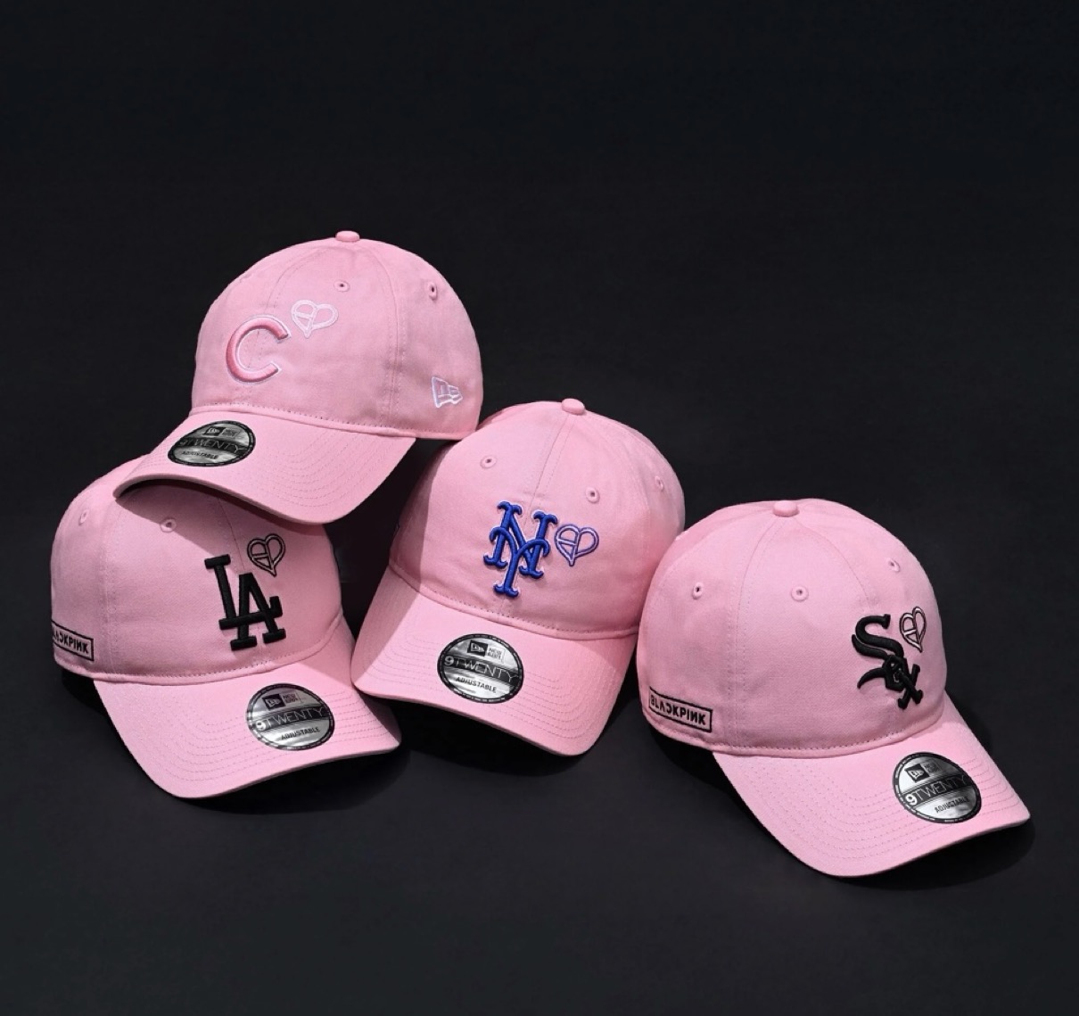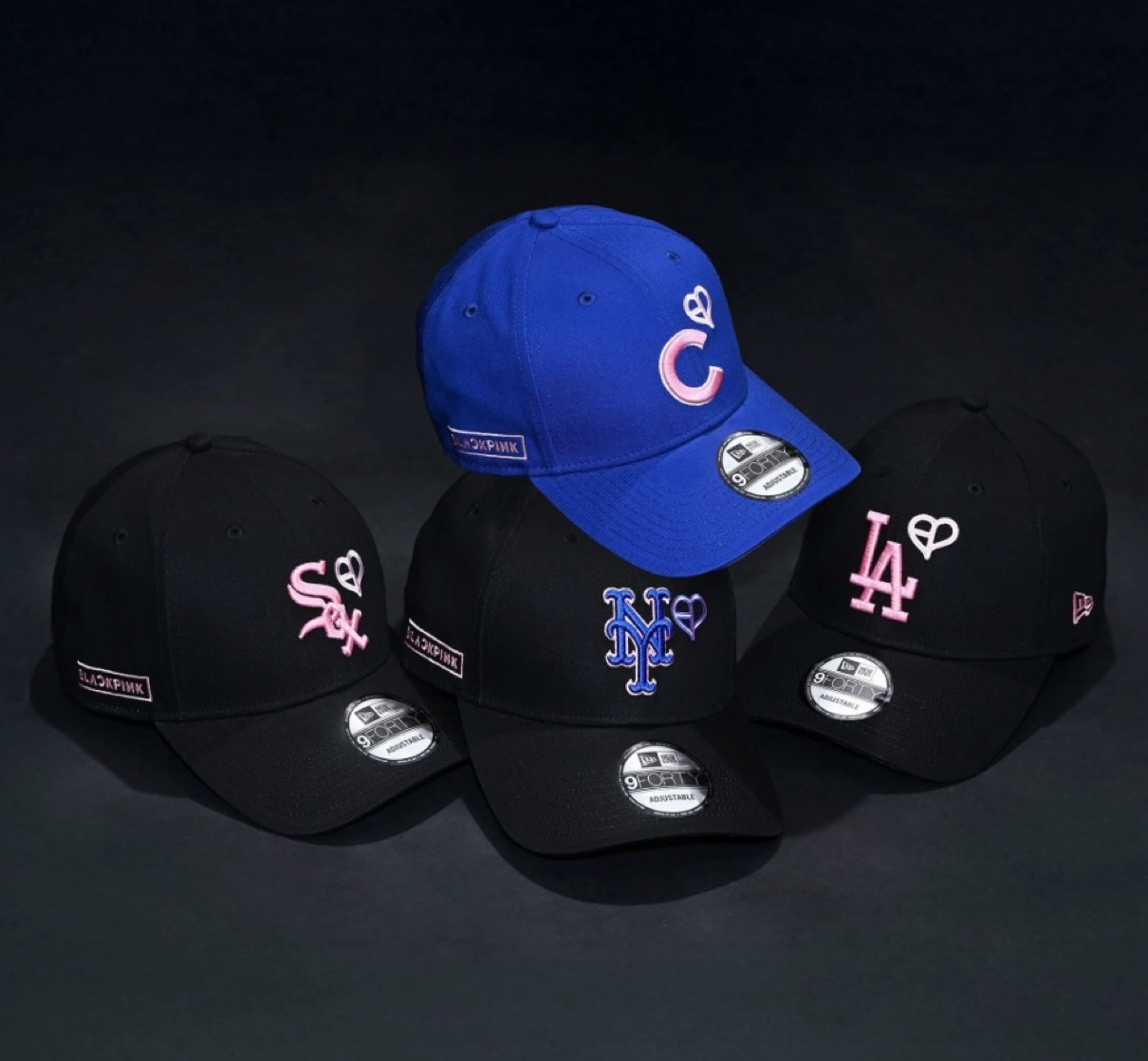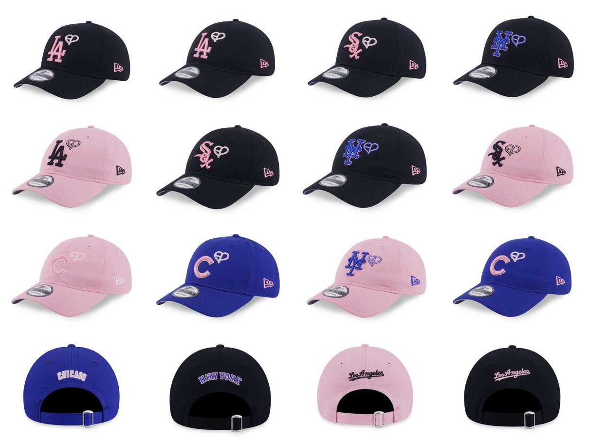 世界的人気を誇るガールズグループBLACKPINKとMLBによるトリプルコラボレーションコレクションが登場。MLBチームであるロサンゼルス・ドジャース、シカゴ・カブス、ニューヨーク・メッツ、シカゴ・ホワイトソックスの4チームをフィーチャーし、フロントにはBLACKPINKのハートロゴ、ライトサイドにはBLACKPINKのボックスロゴを配した、アイコニックなデザインに仕上げている。
