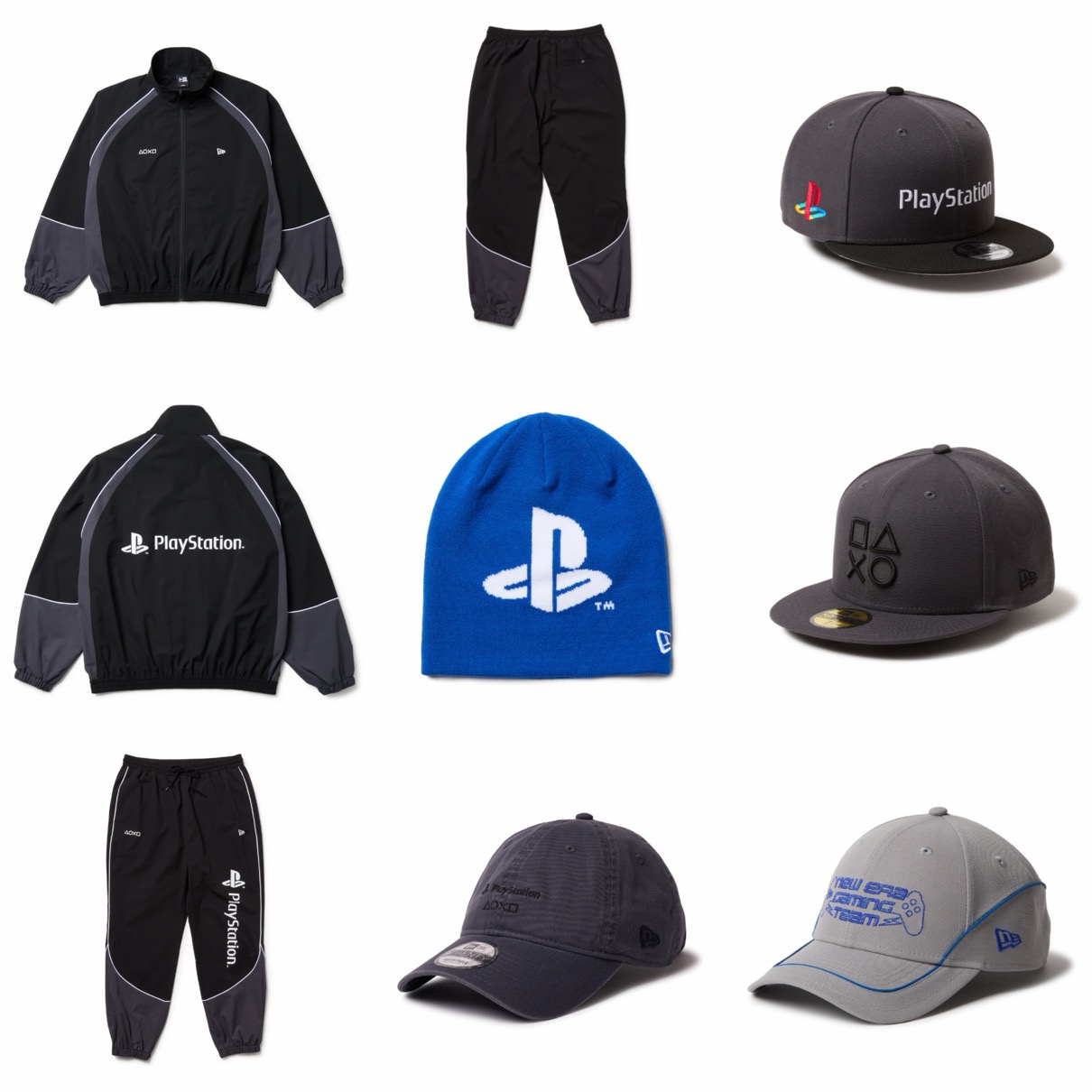 1994年12月に初代機が発売されるやいなや、瞬く間にヒットし、30年以上経った今でも世界中で愛され続けているゲームブランド「PlayStation」とニューエラの初めてのコラボレーションコレクションが登場。誰もが目にしたことのあるPlayStationのロゴや、コントローラーの「△〇×□」マークをフィーチャーしたアートワークはもちろん、架空のeスポーツチームのユニフォームをイメージしたデザインなど、見ているだけで思わず気分が高揚するようなヘッドウェア、アパレル、ポーチやバッグなど、幅広いバリエーションのアイテムが展開する。