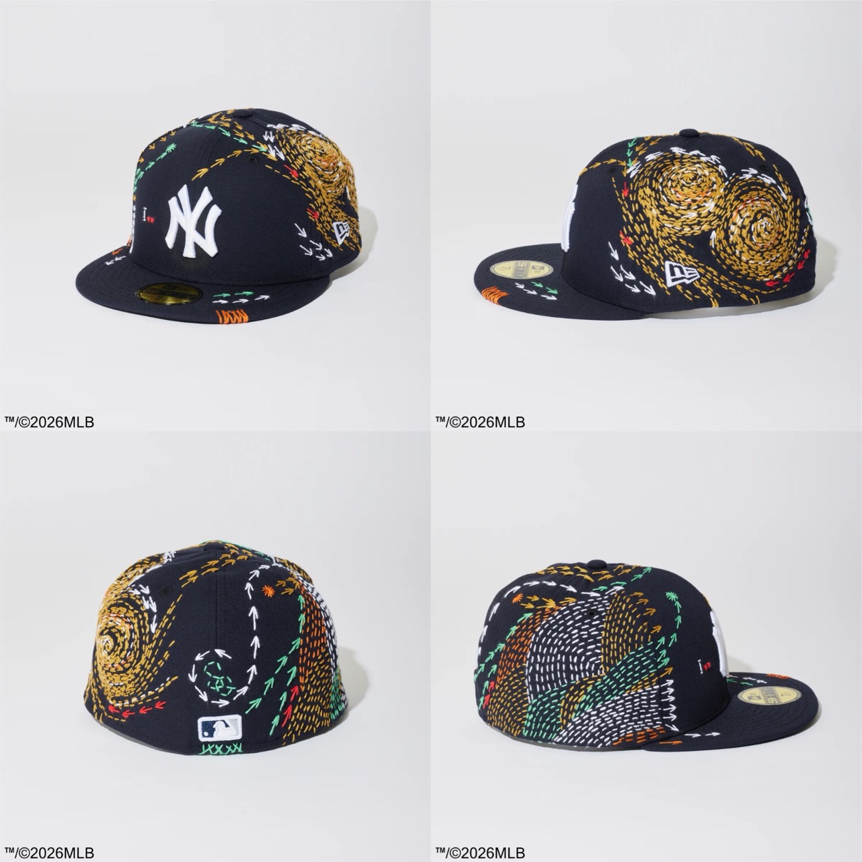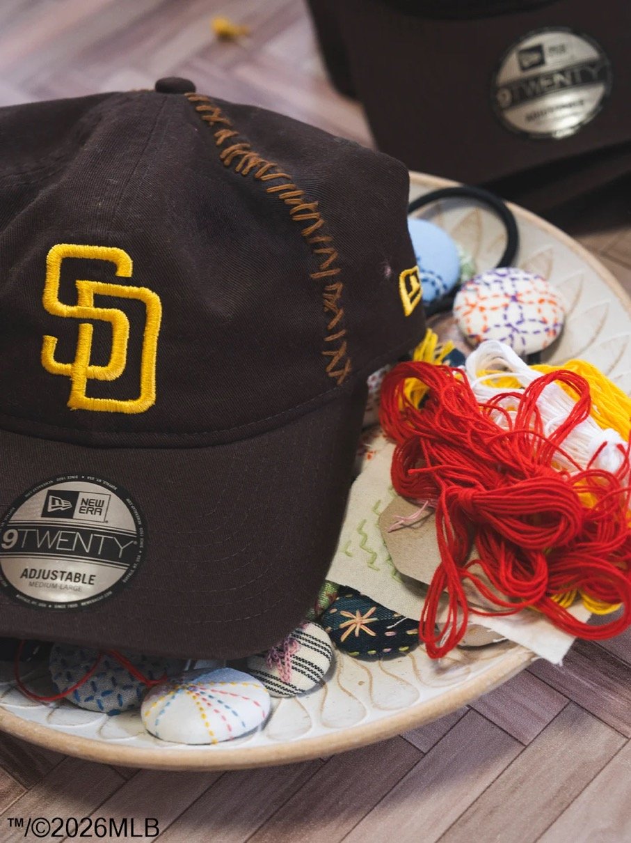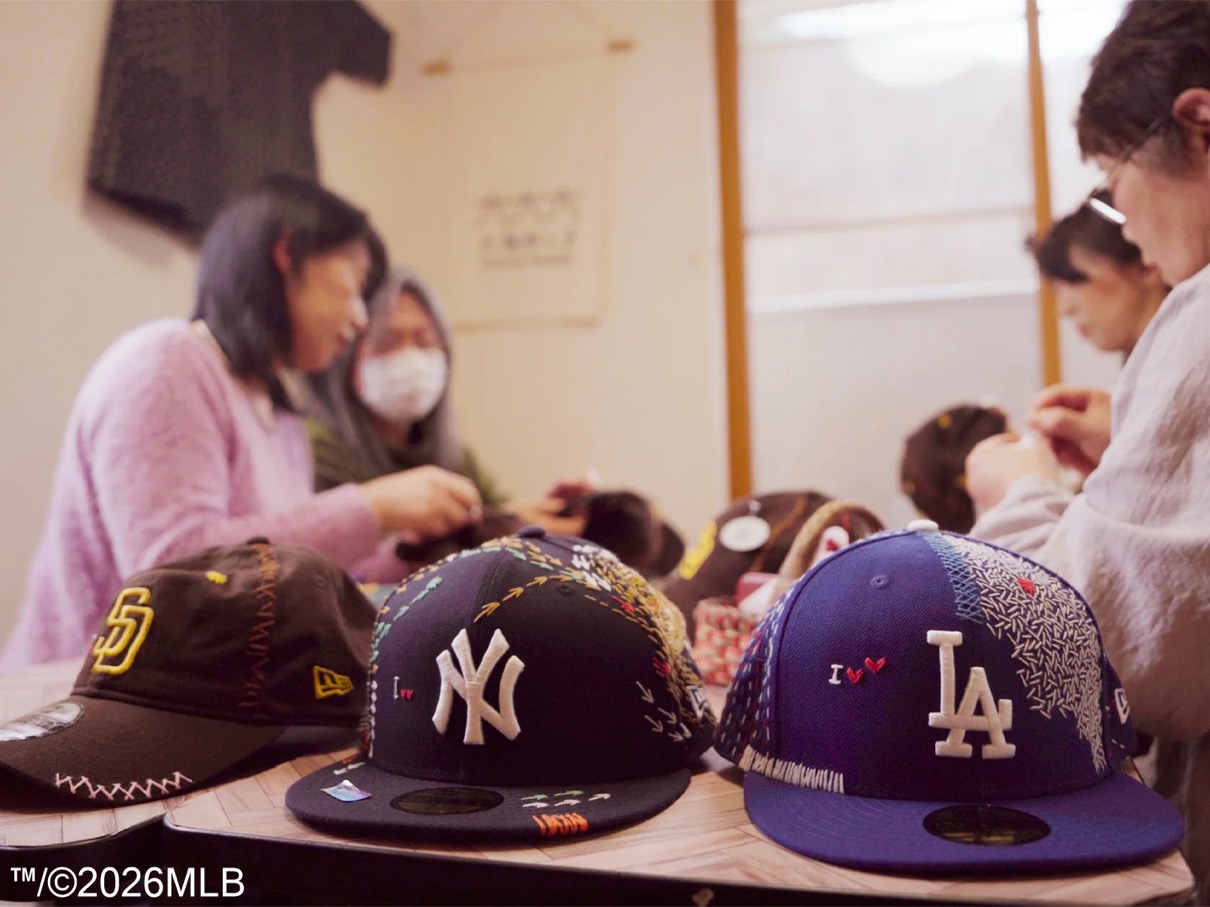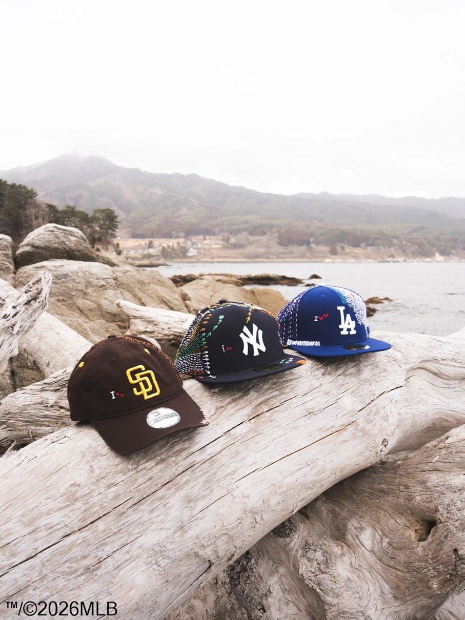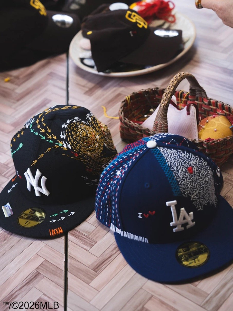 SASHIKO GALSは、日本古来の技法「刺し子」を現代の感性で再解釈し、手仕事を通じて文化とコミュニティを未来へつなぐプロジェクトとして、これまでもスニーカーやアートピースなど、素材やジャンルを限定せずに展開してきた。本コラボレーションでは、ニューヨーク・ヤンキースとロサンゼルス・ドジャースのチームロゴを配した59FIFTY®︎(フィフティーナインフィフティー)と、サンディエゴ・パドレスのロゴを配した9TWETY(ナイントゥエンティー)の3種を販売する。