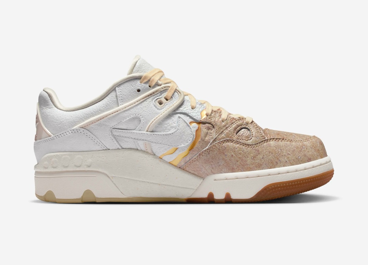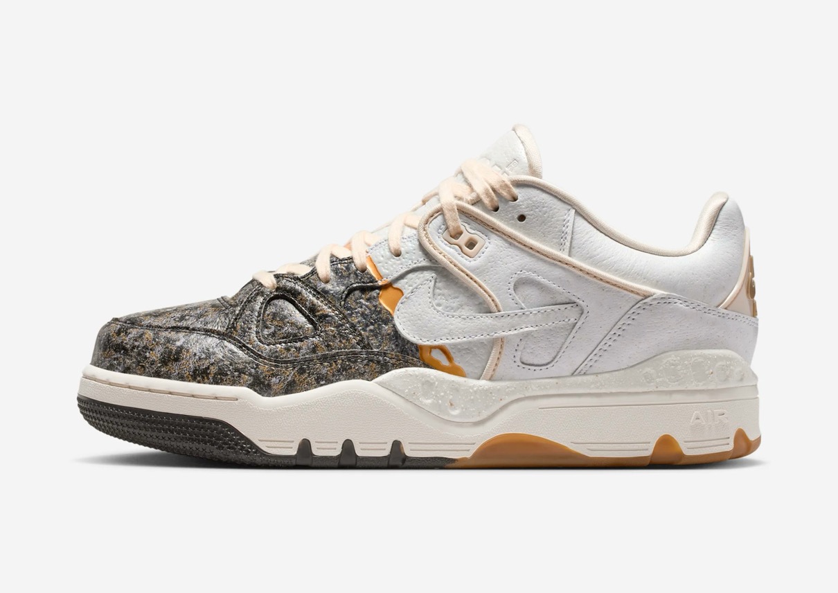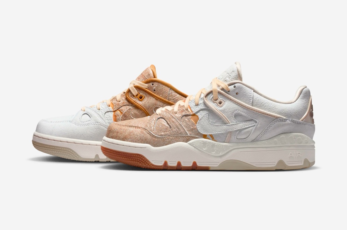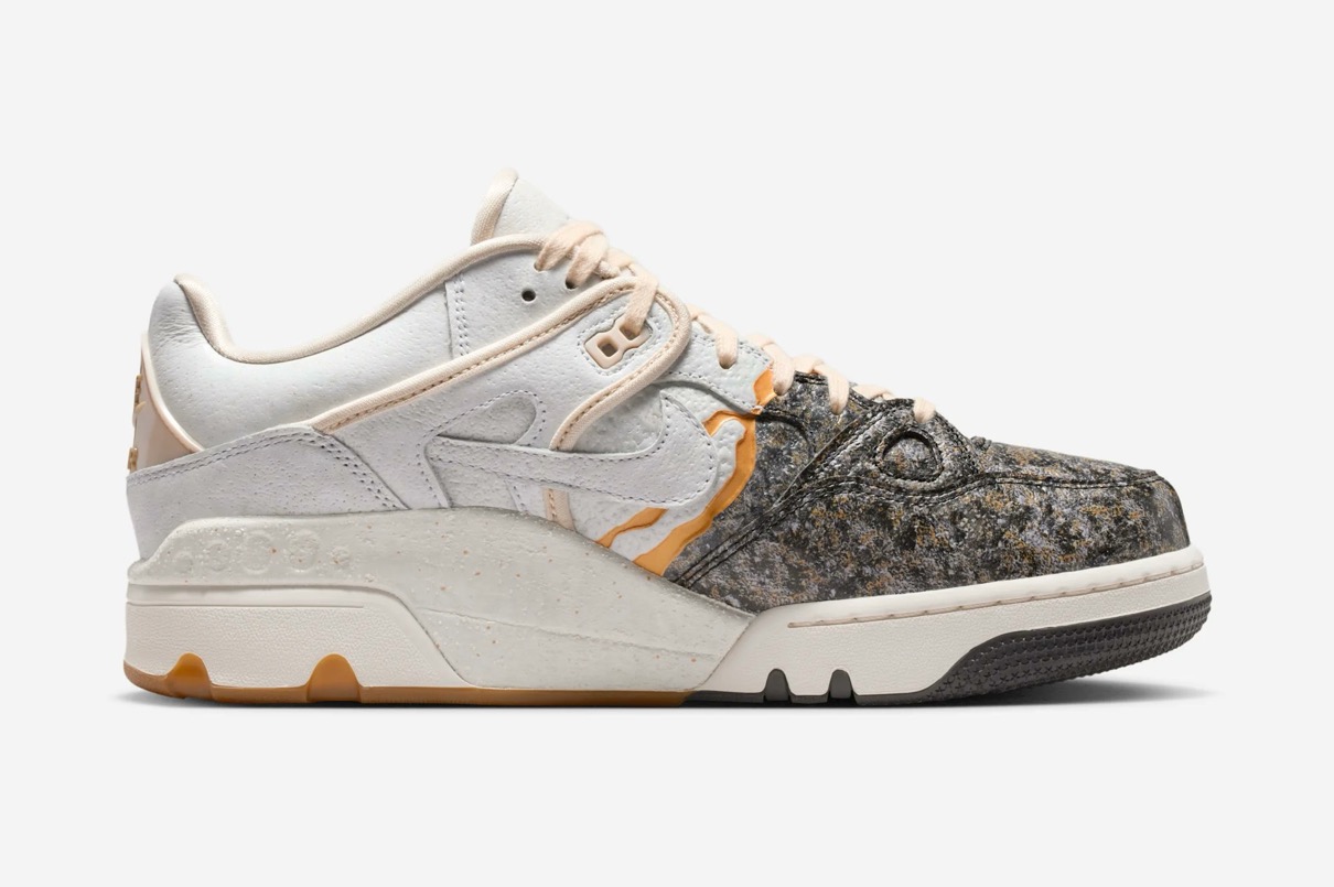 1988年に登場したAir Force 3 Highのローカットver.『Air Force 3 Low(エアフォース3 ロー)』がNIGO®︎コラボモデルとして登場。今回の新作は割れた陶磁器を漆と金粉を使って修復する日本の修復芸術「金継ぎ」に着想を得ており、不完全さの中に美を見出す思想を表現。ヒール下にはアイコニックな NIGO Forceと Nike Air ロゴが刻印されており、特別デザインのワッペンやメタルパーツ、スペシャルデザインのシューズボックスが付属。カラーはファントム/ナイトスタジアム/バンブーと、バンブー/マルチカラー/ミディアムブラウンの2色がラインナップし、テクスチャード加工のレザーで陶磁器の見た目と質感を、デボス加工のゴールドのスプリットで金継ぎの美を再現。さらに、非対称のブロッキングやスプリットカラーのミッドソールで、「壊れたものを修復する」というテーマをシューズ全体で体現した。