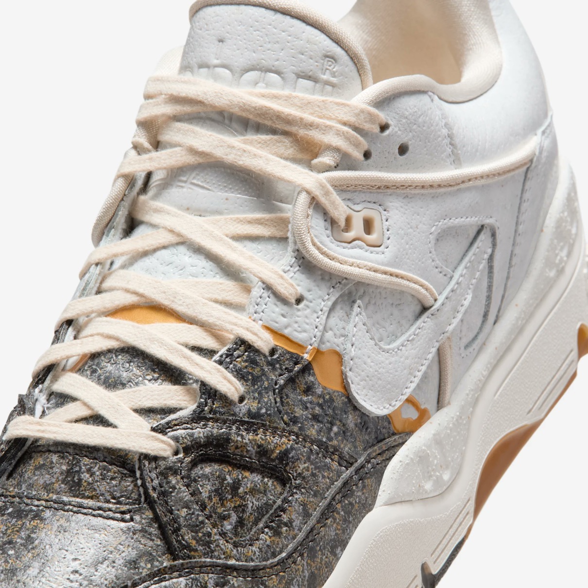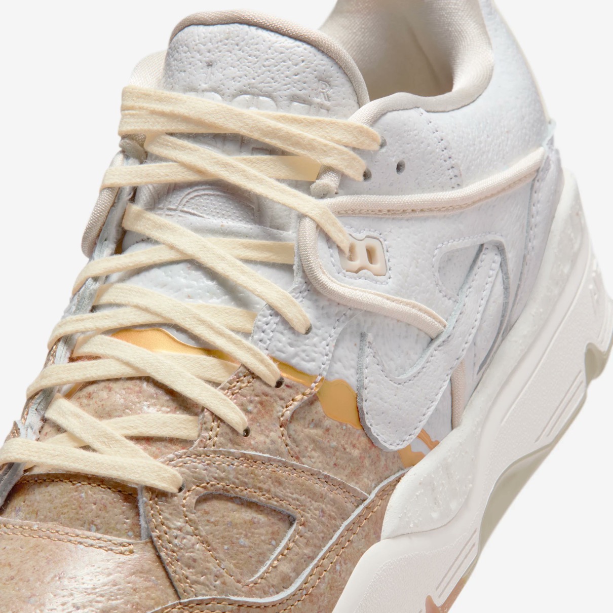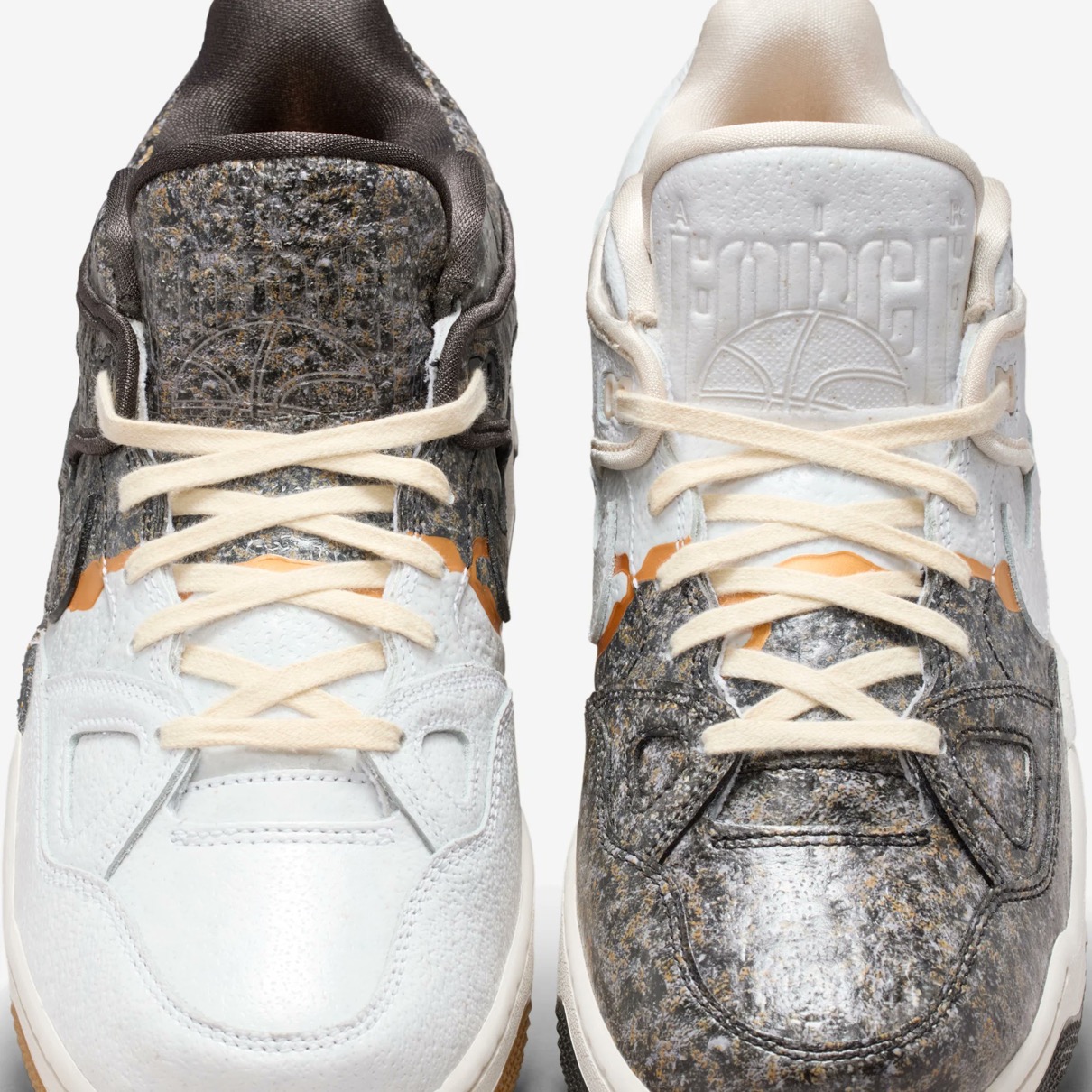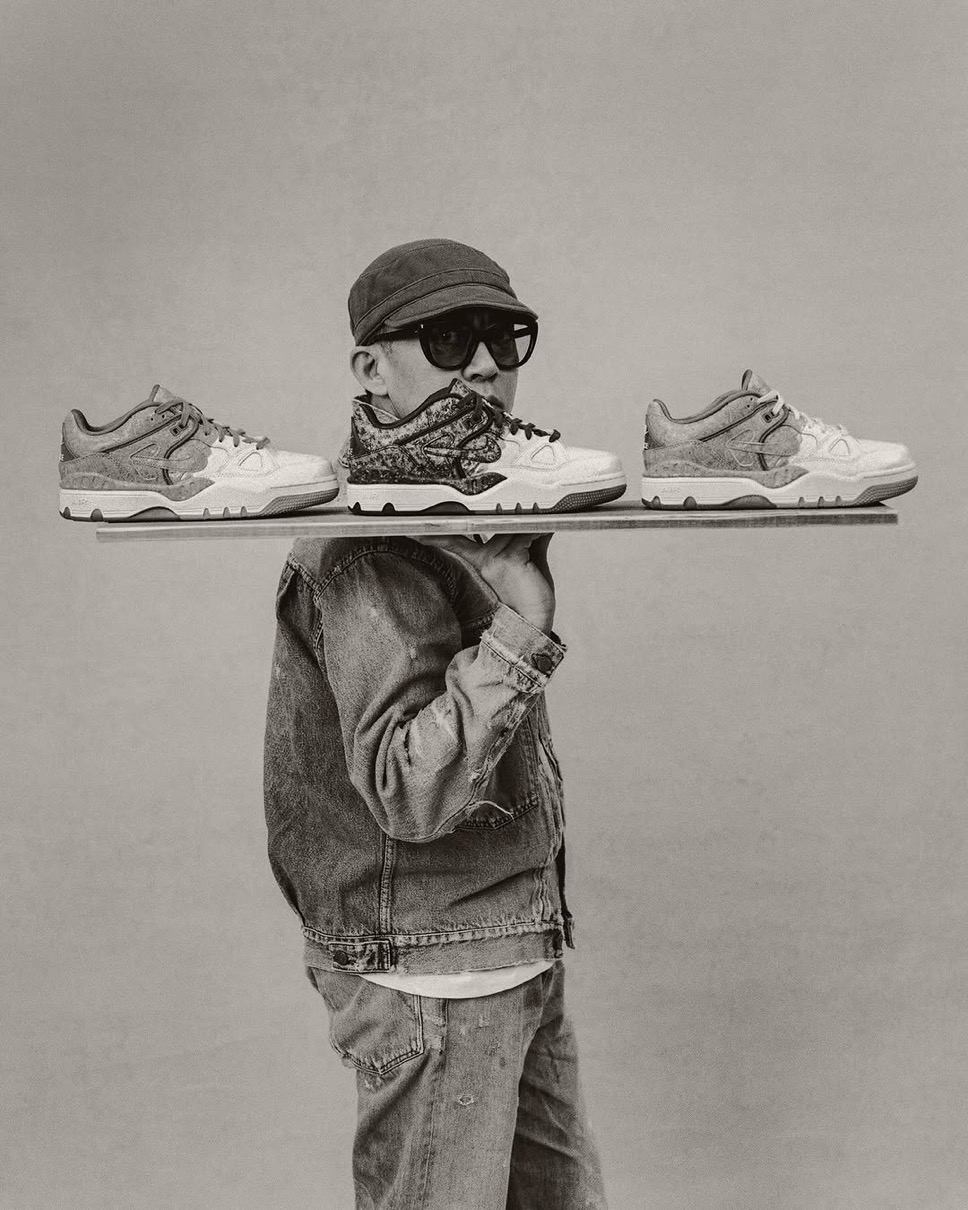 1988年に登場したAir Force 3 Highのローカットver.『Air Force 3 Low(エアフォース3 ロー)』がNIGO®︎コラボモデルとして登場。今回の新作は割れた陶磁器を漆と金粉を使って修復する日本の修復芸術「金継ぎ」に着想を得ており、不完全さの中に美を見出す思想を表現。ヒール下にはアイコニックな NIGO Forceと Nike Air ロゴが刻印されており、特別デザインのワッペンやメタルパーツ、スペシャルデザインのシューズボックスが付属。カラーはファントム/ナイトスタジアム/バンブーと、バンブー/マルチカラー/ミディアムブラウンの2色がラインナップし、テクスチャード加工のレザーで陶磁器の見た目と質感を、デボス加工のゴールドのスプリットで金継ぎの美を再現。さらに、非対称のブロッキングやスプリットカラーのミッドソールで、「壊れたものを修復する」というテーマをシューズ全体で体現した。