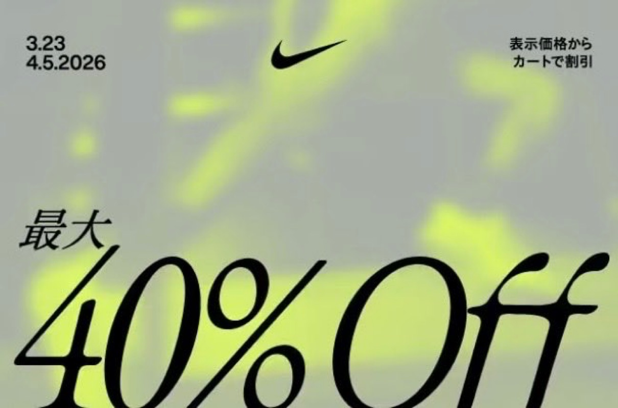米スポーツブランド「Nike(ナイキ)」の 春セール2026 が、国内2026年3月23日(月)より開始。期間は2026年4月5日(日)まで。