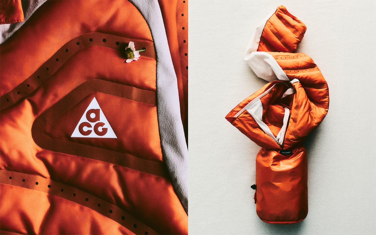 さらに、ラボで研究され、トレイルでテストされた『Nike ACG Lava Loft Down Jacket』も登場。このジャケットには、極寒の地で必要な技術が搭載されている。ダウンを充填したバッフルで暖かさを確保し、AeroLoftの通気孔で通気性を実現。伸縮性のあるパネルで動きやすく、調節可能なディテールでフィット感も自由自在。暖かさが必要ない場合は、ポケットに収納してコンパクトに持ち運べるデザイン。